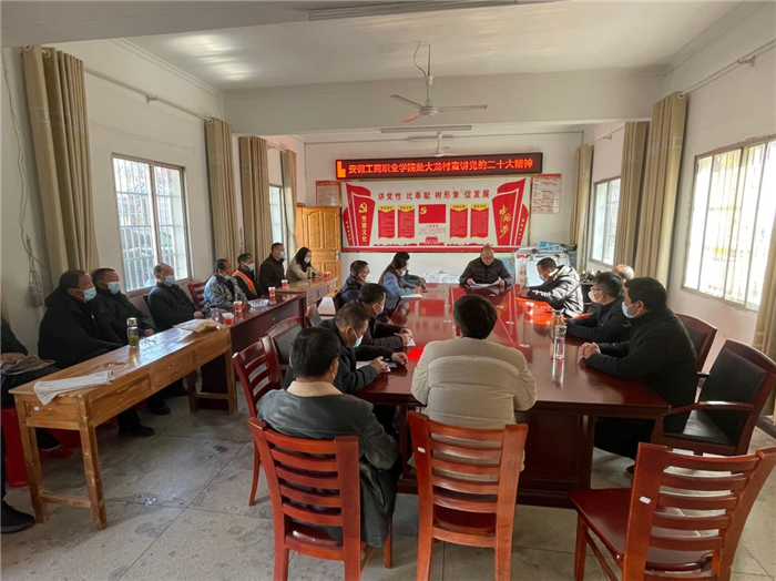 为深入学习宣传贯彻党的二十大精神,推进巩固拓展脱贫攻坚成果同乡村振兴有效衔接,全面推进乡村振兴,2023年1月9日,直属第一党支部耿艳军、陈松、丁闯、李德杰等一行6人深入我校对口帮扶点——安庆市太湖县城西乡大龙村,宣讲党的二十大精神,开展结对共建活动。