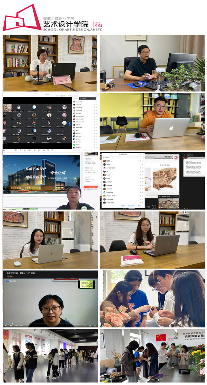 9月19日,艺术设计学院开展了相关入学教育活动。学院院长孔成结合校史院情以《做时代的设计师》为主题全方位的从学院发展到专业建设做了介绍;学院党总支副书记、副院长哈春浪以《我的大学生活》为主题,运用诙谐幽默的语言向同学们介绍了如何快速转变角色做合格大学生; 20日,学院办公室赵文卿以《学生管理规章制度学习》为主题做了报告;学院团总支书记胡佩佩介绍了学院团学活动的情况;21日,教务科长张乐以《教学管理规章制度学习》为主题做了解读;四位教研室负责人分别就我院现有专业做了专业介绍;辅导员宋青青针对22级全体新生召开了线上主题班会。学院还邀请了马克思主义学院教师李佳、教务处教学运行与信息科科长方冉从心理教育和信息化方面对新生开展培训。整个入学教育活动严肃活泼、丰富多彩。