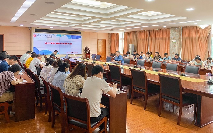 为确保各项期末学生工作平稳、有序的进行,6月5日中午,会计学院在明德楼二楼会议室召开辅导员期末工作专题会议,全体辅导员参加会议,会议由会计学院党总支副书记杨锐主持。