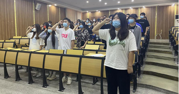 青年团员们面向团旗,高举右手,紧握右拳,郑重宣誓:“我志愿加入中国共产主义青年团,坚决拥护中国共产党的领导……”慷慨激昂的铮铮誓言,震撼每一位青年学子,更加坚定了忠于党、忠于人民的理想信念。简短、庄严的宣誓仪式,让大家经历了心灵的洗礼,在庄严肃穆的仪式中再一次坚守信仰、勇担使命、永葆先进。