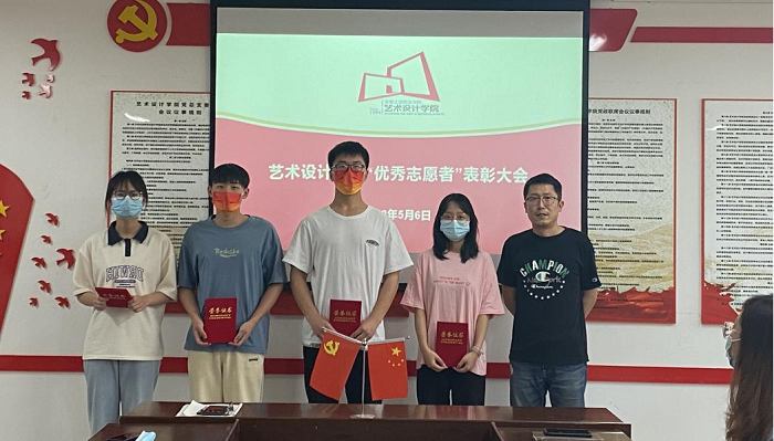 5月6日,艺术设计学院召开“优秀志愿者”表彰大会,艺术设计学院院长孔成,党总支副书记、副院长哈春浪,教务科科长张乐,为41名疫情防控期间坚守一线,冲在前列的学生志愿者颁发荣誉证书,鼓励他们继续发挥示范带头作用,不断取得更大成绩,唱响新时代青年的责任担当。