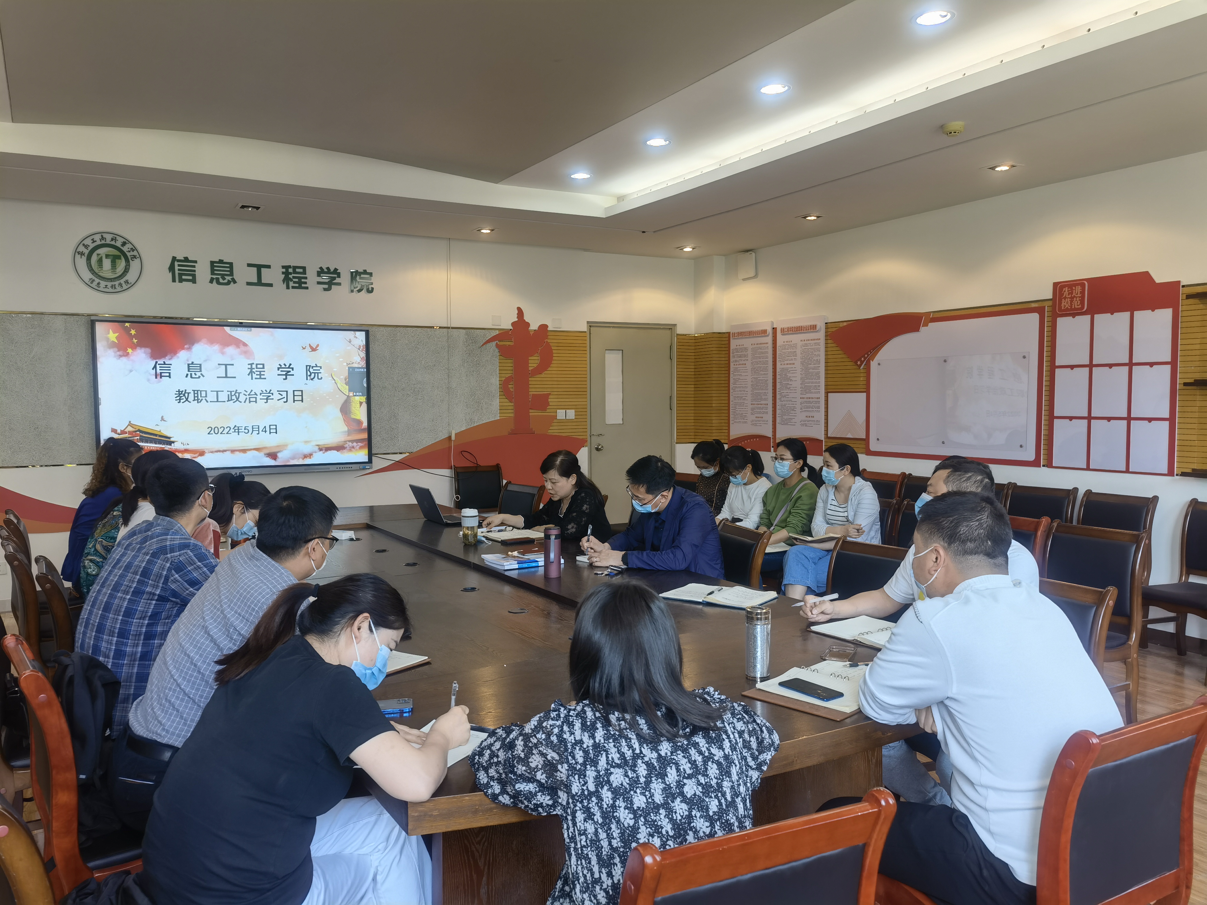 5月4日下午,信息工程学院通过线上线下相结合方式开展教职工政治学习日活动。学院全体教职工参加了此次活动,活动由学院党总支书记张静雯主持。