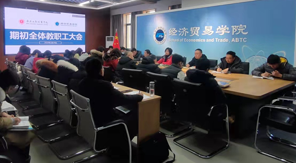2月20日上午 ,经济贸易学院在学院教师能力提升中心召开新学期全体教职工大会。经济贸易学院院长张颖、学院党总支常务副书记沈飞出席会议,学院全体教职工参会。会议由沈飞主持。