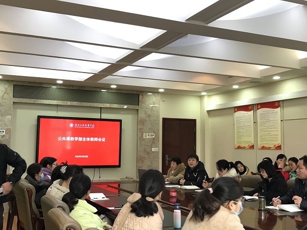 2月20日上午,公共课教学部召开期初全体教师会议,会议由公共课教学部主任杨忠慧主持,全体专兼职教师参加了本次会议。