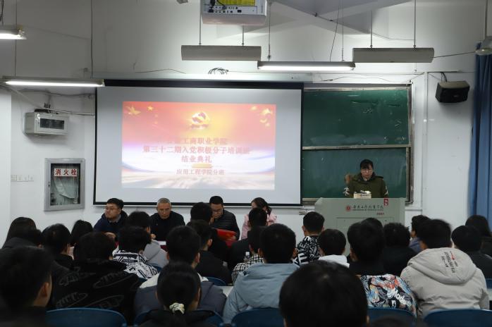 1月3日下午,应用工程学院第三十二期入党积极分子培训班(二班)结业典礼在9号多媒体教室顺利举行。学院党总支书记丁浩、组织员刘婷婷、团总支书记杨东、部分辅导员以及全体入党积极分子出席了结业典礼。典礼由刘婷婷主持。