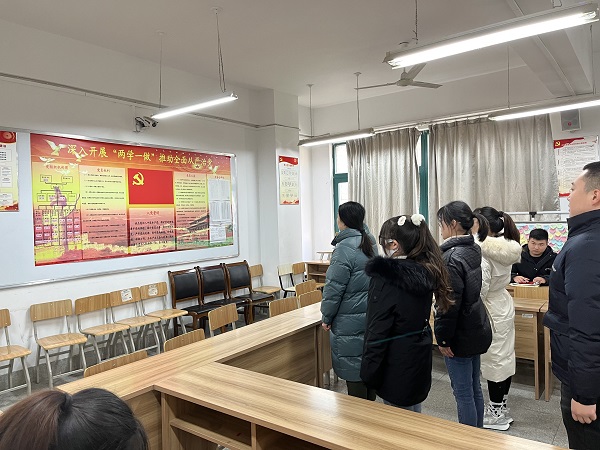 2021年12月24-26日,会计学院学生第二党支部在教学楼B301教室召开支部大会,讨论程舟等18位同志的入党转正问题。会议由支部书记宋静娴主持,支部正式党员和拟转正的学生预备党员参加了会议,党总支副书记杨锐到会指导。