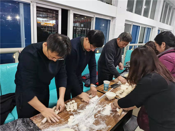 学生公寓管理工作不仅需要领导和老师们的指导,同时也离不开宿管员们的辛勤付出。孩子们将第一锅热气腾腾的饺子送到每位值班的宿管员手里,叔叔、阿姨们既感动又开心。
