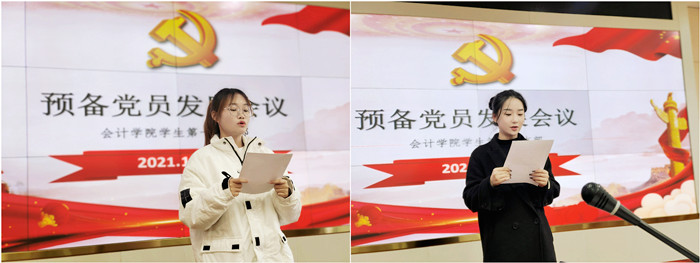 会上,万晓玟、姜姹姩等代表新发展预备党员进行了表态发言,她们说到:“今天是一个值得纪念的日子,支部大会讨论通过接收我成为了一名预备党员,体现了党组织对我的关怀。这是学院对我的培养教育、各位党员对我的关心和帮助的结果。在这里,我表示深深的感谢!我向党组织表态:会在以后的生活中时刻以一名共产党员的标准严格要求自己,时刻接受监督和批评,不断进行自我完善来更好的为师生服务。并且不会辜负党组织的培养,会一如既往地向一名优秀共产党员的道路上不断努力奋斗。”