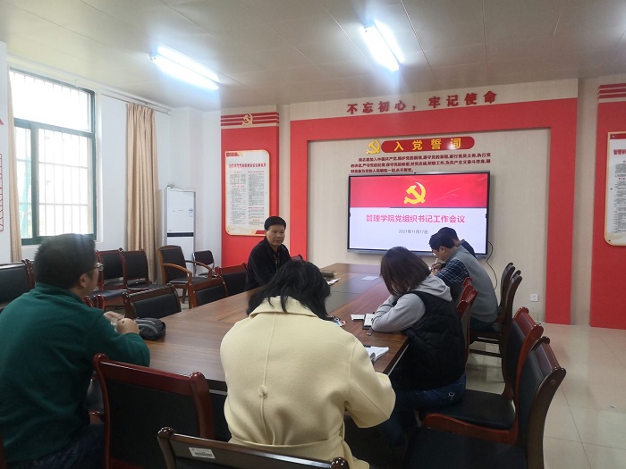 为增强基层党组织政治功能和组织力,充分发挥基层党组织战斗堡垒作用,11月17日,管理学院党总支于党员活动室召开党支部书记工作例会,会议由管理学院党总支书记曹大友主持,学院总支委员、各党支部书记、团总支成员参加了本次工作会议。