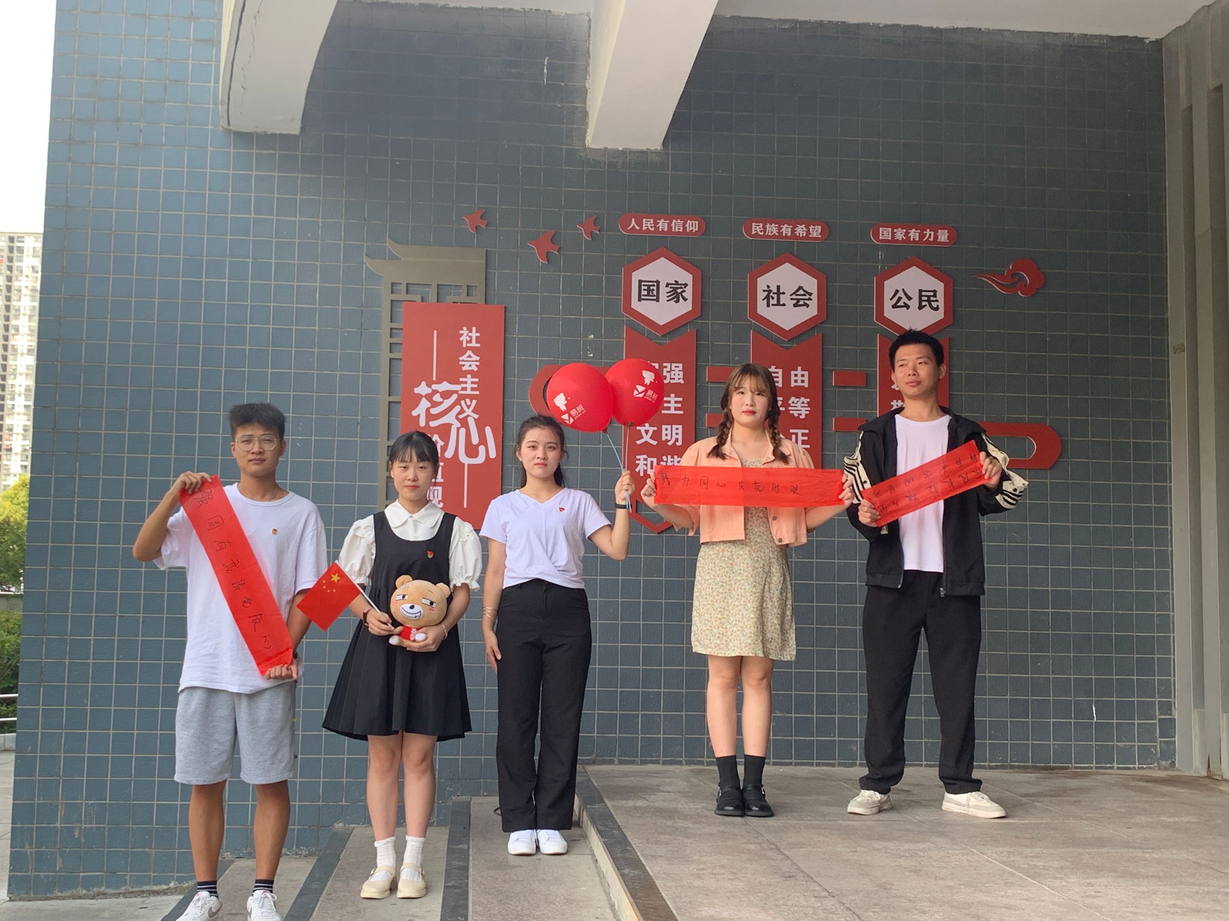 2021年10月,易班发展中心开展“‘易’起为祖国打call”活动,学生助理们分别在教学楼、图书馆、文化广场等处拍照打卡,用各种方式表达对祖国母亲深沉的爱意和崇高的敬意。有的手持鲜红旗帜,有的高举“请党放心 强国有我”的大红横幅,礼赞祖国母亲,展现爱国精神!“不管时光如何流转,立志报国始终是我们前行的动力,是我们追求的回音。”