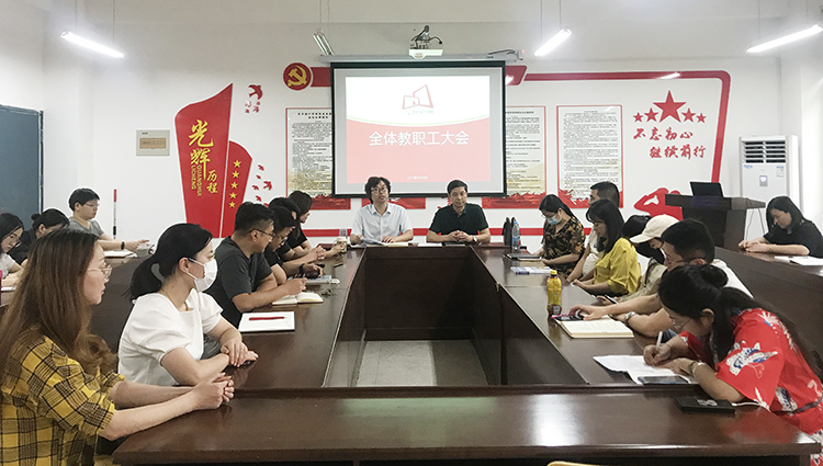9月4日中午,艺术设计学院在致知楼党员活动室召开2021-2022学年第一学期全体教职工大会,并结合新学期学院工作重点,对贯彻落实校领导在新学期全体中层干部会议讲话精神进行部署与安排。本次会议由学院院长孔成主持,学院党总支副书记、副院长哈春浪等全体教职工参加了本次会议。