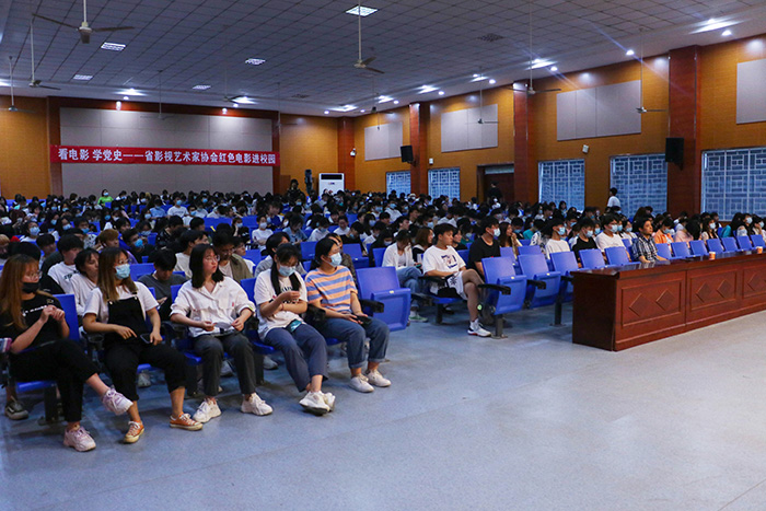6月3日,艺术设计学院联合安徽省影视艺术家协会组织开展了“看电影 学党史——红色电影进校园”活动。安徽省影视艺术家协会理事、安徽电影馆馆长杨承愉,艺术设计学院院长孔成,副书记、副院长哈春浪及我院20级400多名同学走进庐阳校区“时间剧场”观看影片《红色娘子军》。