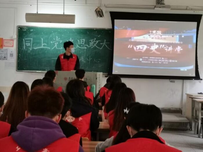 为深入贯彻习近平总书记关于深化思想政治理论课改革创新和“大思政课”的重要指示批示精神,全面落实习近平总书记在党史学习教育动员大会上的重要讲话精神和《中共中央关于在全党开展党史学习教育的通知》的部署安排,真正做到“学史明理、学史增信、学史崇德、学史力行”,2021年4月24日,易班发展中心全体学生助理在C101教室同上“党史”思政大课。