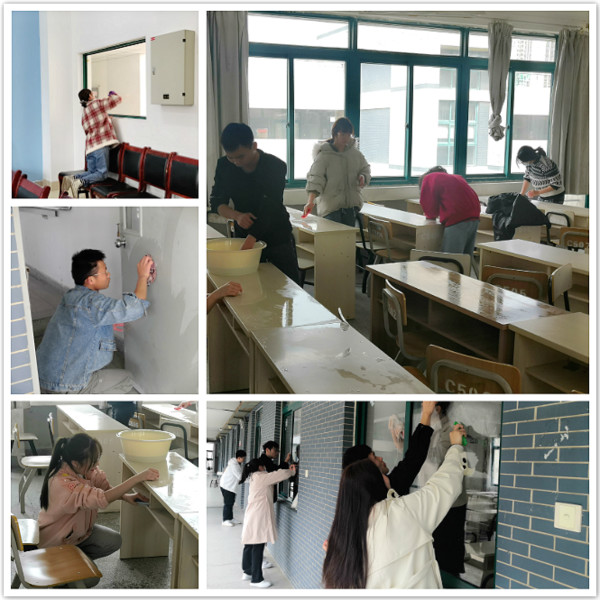 活动中,同学们热情高涨,积极投入。面对桌面的污渍和小广告,同学们不怕脏、不怕累,分别用刷子、钢丝球、抹布、橡皮以及乙醇反复仔细的擦洗,进行“攻坚战”,把所谓的“课桌文化”一点点的清除。经过一个中午的辛苦清理,同学们顺利的完成了“课桌美容”,教室变得干干净净、焕然一新。在整个清洁过程中,同学们组织有序,分工明确,齐心协力,用实际行动来美化自己的学习环境,充分展现了经贸学子良好的精神风貌。