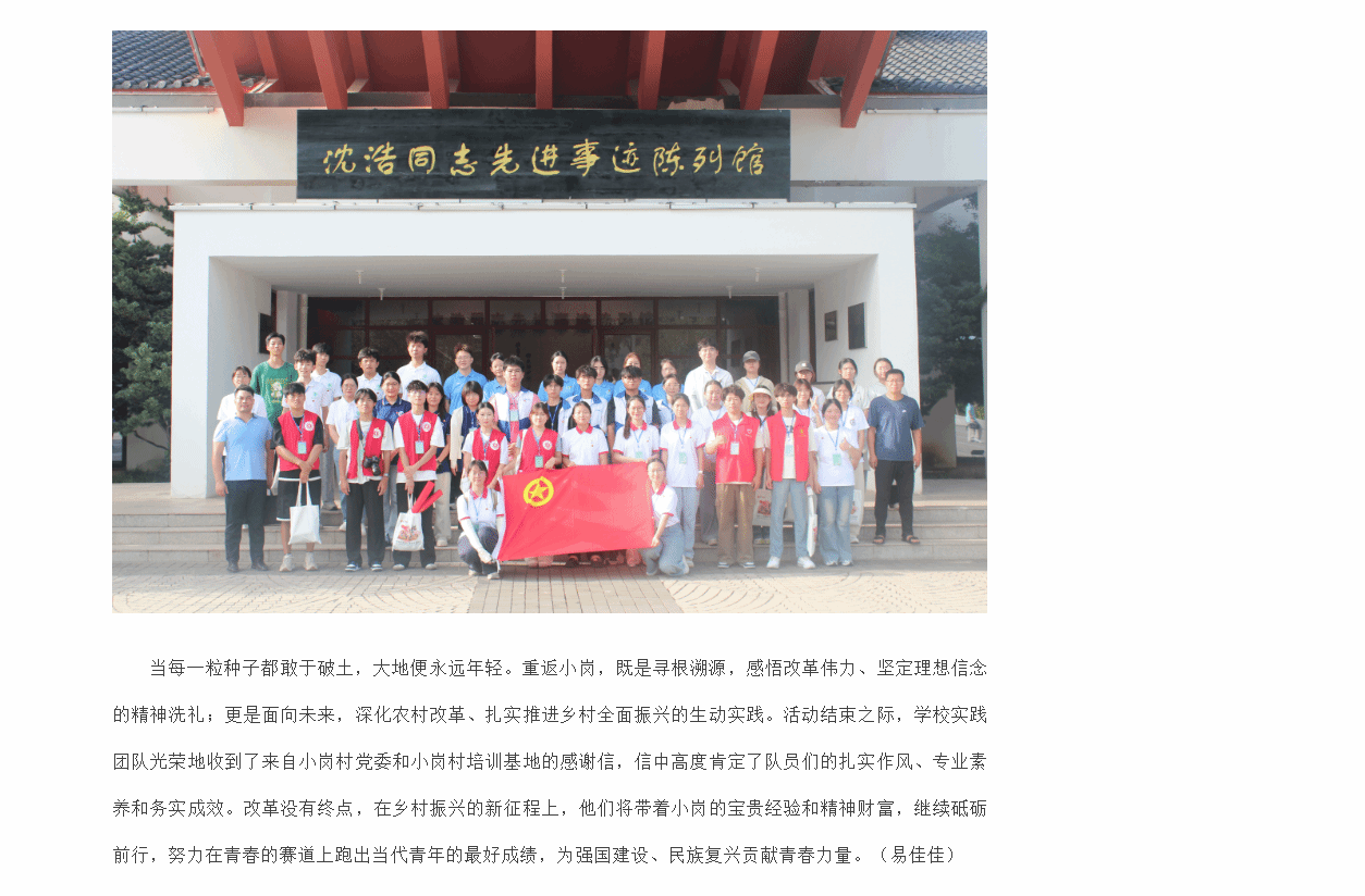原文链接:【安徽新闻网】报道:安徽工商职业学院“破冰薪火实践团”赴小岗村开展暑期社会实践活动