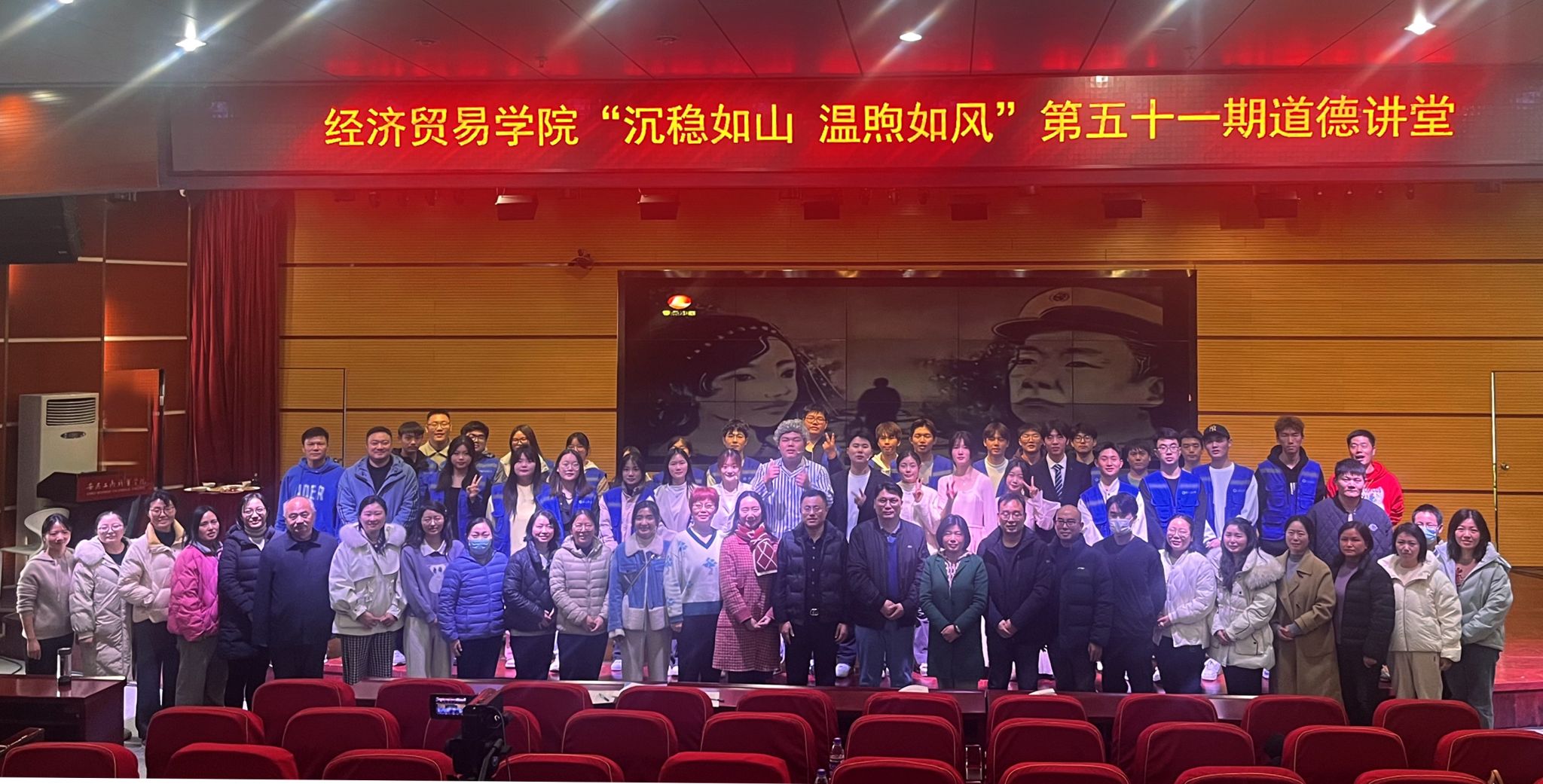 12月6日中午,由校党委宣传统战部主办、经济贸易学院承办的学校第五十一期道德讲堂——《沉稳如山 温煦如风》在双凤校区学术报告厅隆重举行。校党委宣传统战部马大峰,经济贸易学院党总支书记边昊,院长张颖及全体教师和400余名学生参加了此次活动。