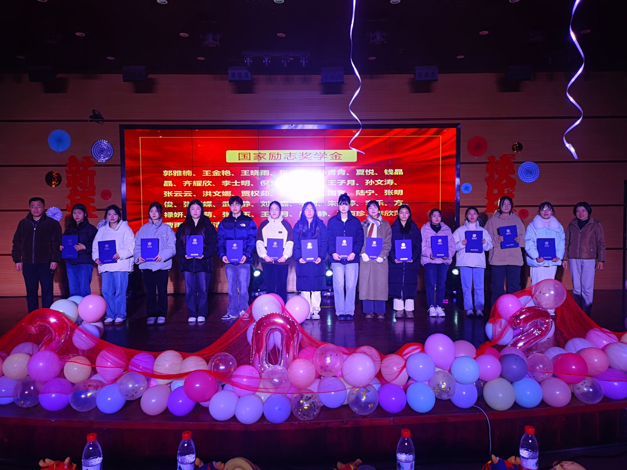 此次晚会分上下两场,上半场为表彰学院2023年度的杰出学子。在庄严的颁奖仪式中副院长张健宣读获奖学生名单,学院领导为国家奖学金、国家励志奖学金、学校奖学金、院三好学生、优秀学生干部、技能大赛获奖选手颁发荣誉证书。颁奖过程庄重而温馨,每一个奖项都如同一颗璀璨的明星,点亮了整个学术报告厅。