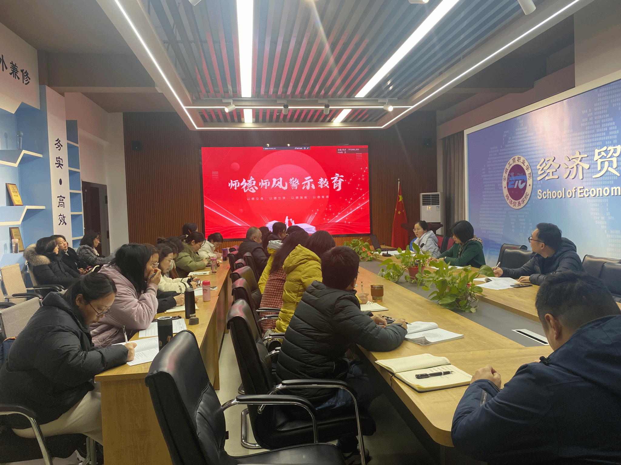 会上,经济贸易学院开展师德师风建设专题教育。张颖领学了《教育部办公厅关于进一步压实高校师德师风建设主体责任的通知》,并对新学期师德师风工作进行了具体部署。党总支副书记马莉作《师德师风警示教育》专题分享,她从教师、师德、师风的解读;习近平总书记关于师德师风重要论述;师德师风相关制度体系建设;做合格好老师,当育人大先生四个方面,结合师德失范的典型案例对全体教职工进行教育警示,引导全体教师要认真贯彻落实教育部关于师德师风建设要求,把师德师风建设摆在首要位置,做到心中有“道”、心中有“爱”、心中有“尺”,以高度的责任感和认真的工作态度把各项任务落实落细,为学校高质量发展贡献力量。