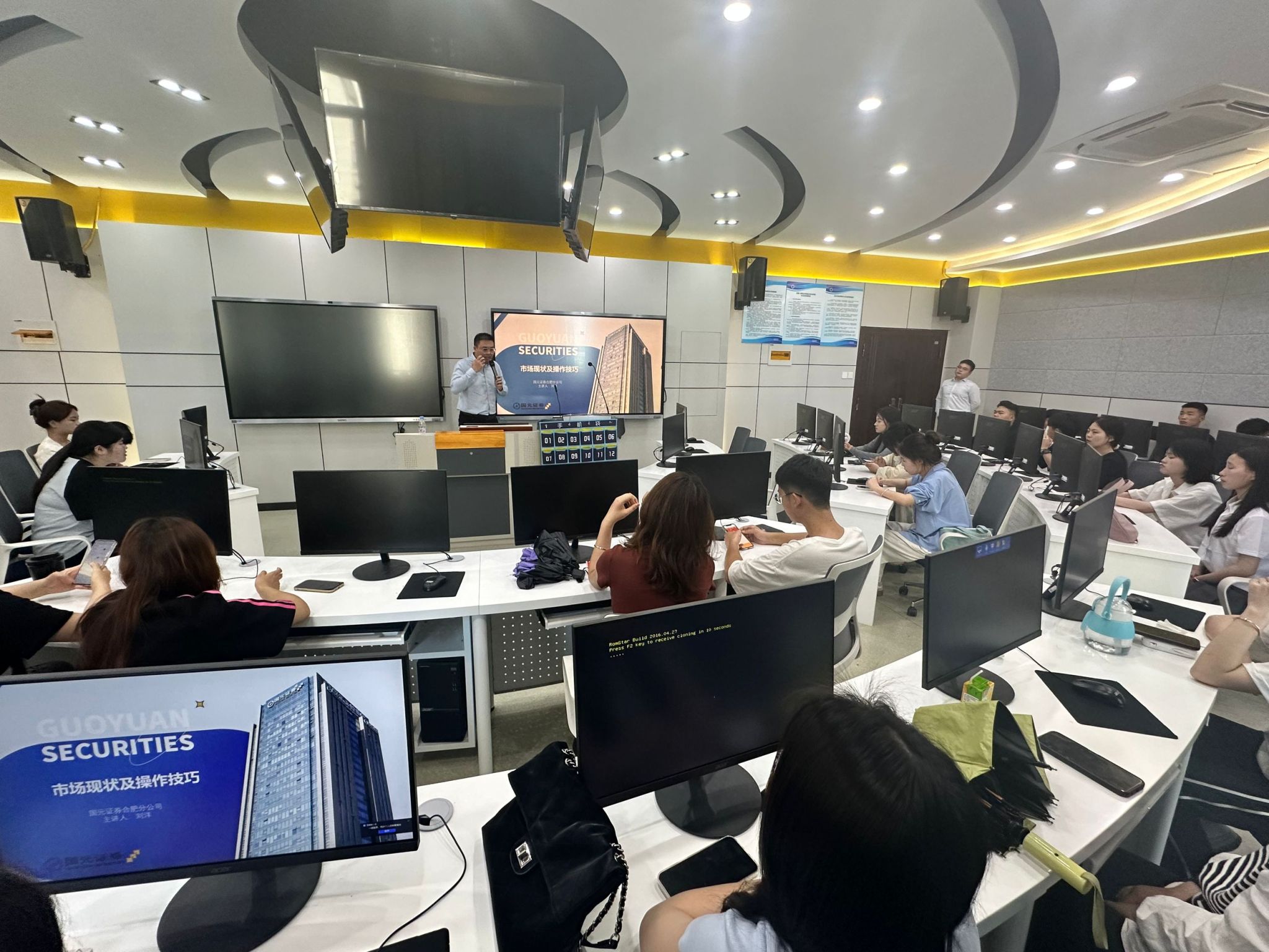 为增强大学生金融风险防范意识、掌握必备金融知识、增强自身金融综合素质、切实保障学生群体财产安全,2024年5月22日下午,经济贸易学院联合国元证券投资者教育基地,在我校投资理财实训室共同开展了“金融反诈进校园 筑牢反诈安全墙”知识讲座,金融服务与管理专业共计60余学生参加活动。