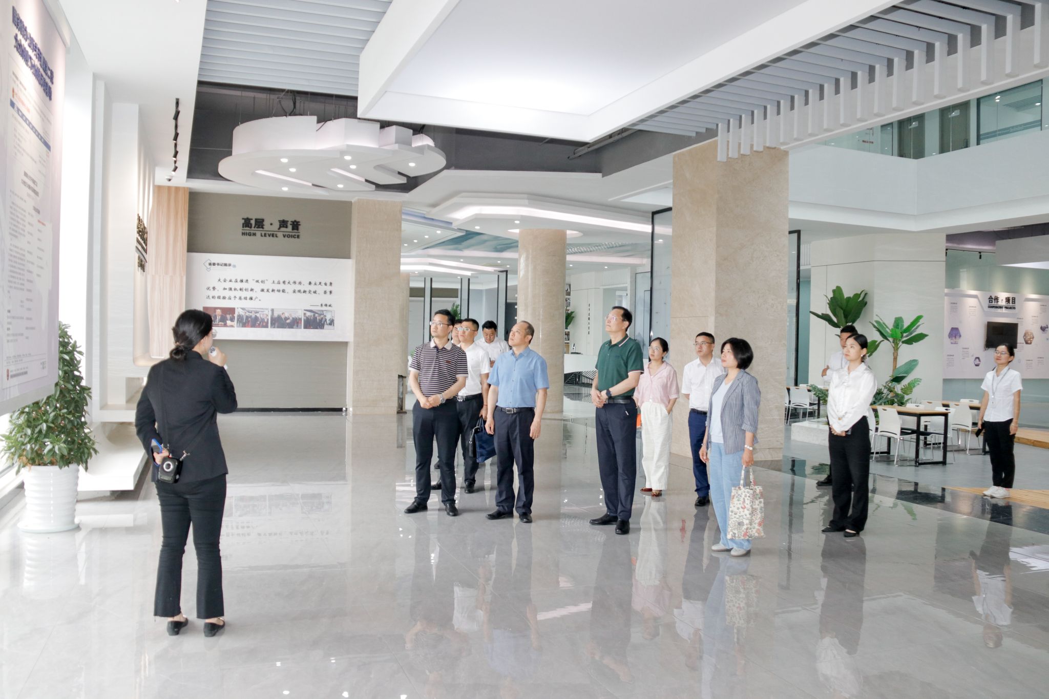 齐建平一行首先在荣事达集团副总裁、人力资源系统总监罗松等陪同下参观了荣事达双创展厅、国家级双创示范基地和双创大学、智能家居检验检测实验室、品冠E家科技住宅展厅、智慧文旅舱项目展场等。参观途中,还看望了我校正在荣事达集团开展企业挂职锻炼的教师支凤宁。