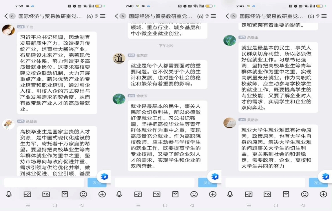 各党支部认真学习习近平总书记在中共中央政治局第十四次集体学习时的重要讲话精神和在中阿合作论坛第十届部长级会议开幕式上的重要主旨讲话精神。会议指出,促进高质量充分就业,是新时代新征程就业工作的新定位、新使命。习近平总书记的重要讲话精神为做好新时代新征程就业工作、促进高质量充分就业提供了根本遵循,我们要锚定新定位、扛起新使命,以更加昂扬的精神状态、更加务实的工作作风做好就业工作,在促进高质量充分就业上不断展现新担当新作为新气象,为以中国式现代化全面推进强国建设、民族复兴伟业提供有力支撑。