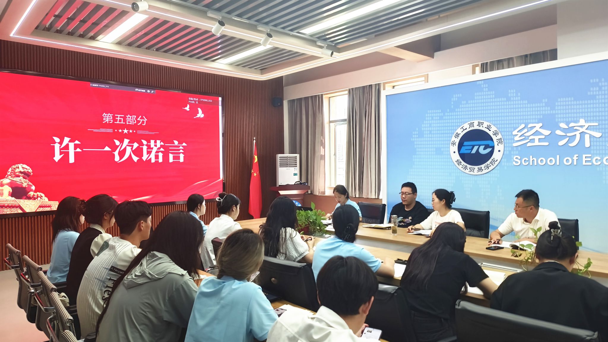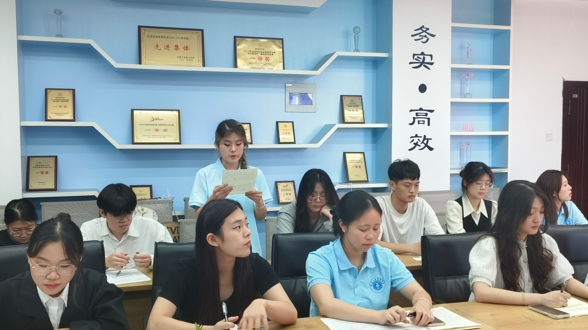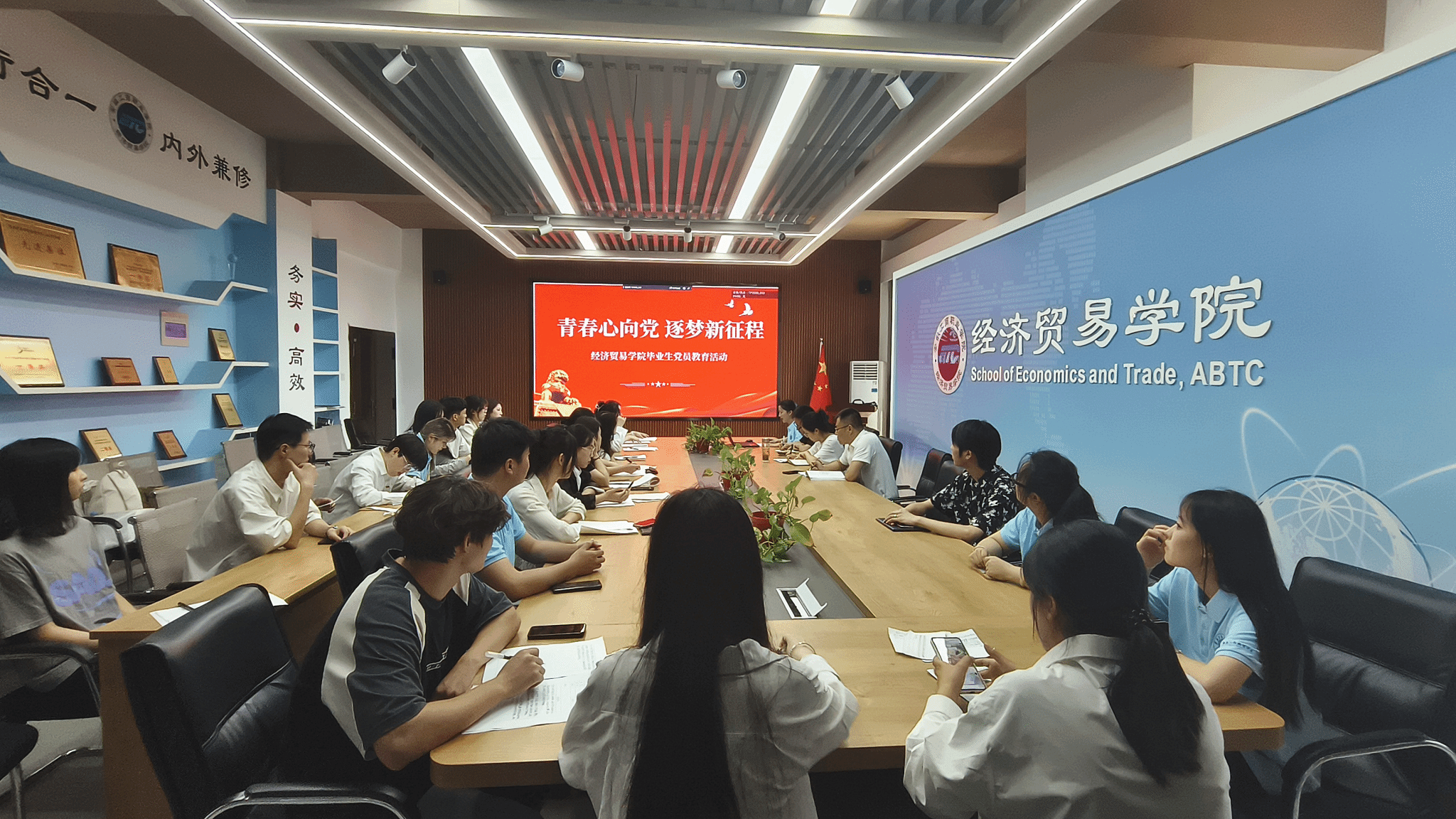 为加强毕业生党员离校教育,强化毕业生党员意识,引导毕业生党员在学思践悟中坚定理想信念,在实干担当中锤炼党性修养,以良好的精神风貌踏入新的征程,近期,经济贸易学院学生党支部开展“青春心向党,逐梦新征程”毕业生党员教育主题党日活动。学院党总支书记边昊、副书记马莉、全体毕业生党员参加活动。活动由学生第二党支部书记杨玉娇主持。