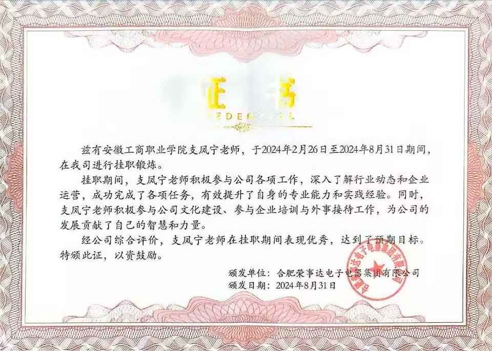 为响应国家职业教育政策,经济贸易学院积极响应《职业学校校企合作促进办法》和《职业教育产教融合赋能提升行动实施方案(2023—2025年)》。2024年2月起,在个人申请的基础上,学院选派罗佳、支凤宁和侯凌霄三位教师分赴合肥海恒达供应链管理有限公司、合肥荣事达电子电器集团有限公司、安徽锐能科技有限公司进行为期半年的企业挂职实践。