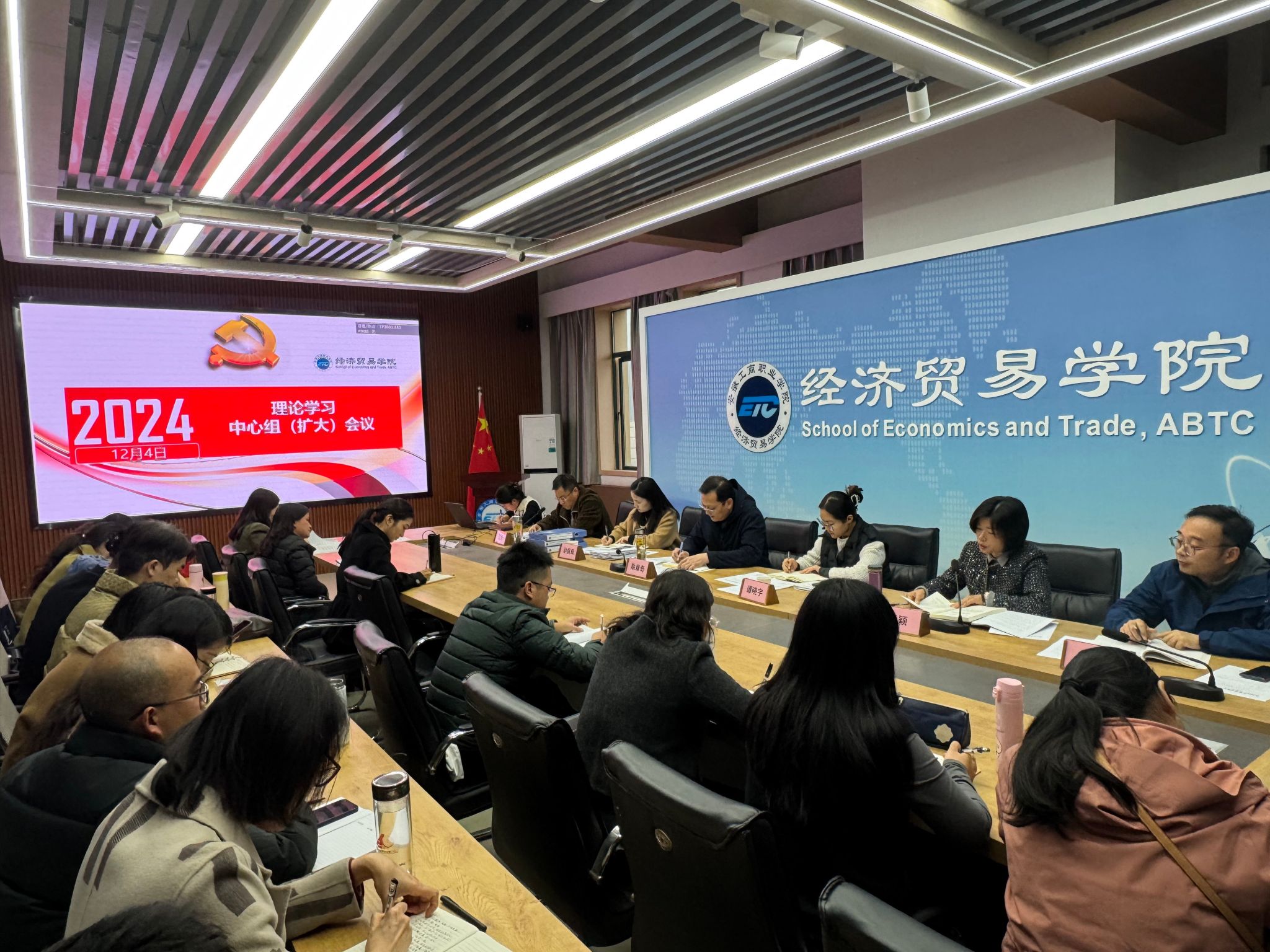 12月4日下午,经济贸易学院党总支在5楼教师能力提升中心召开理论学习中心组学习(扩大)会议,校党委委员、副校长陈章奇、党委宣传统战部胡佩佩、组织人事处谭晓宇组成工作组列席旁听,会议由党总支书记边昊主持,全体教职工参加会议。