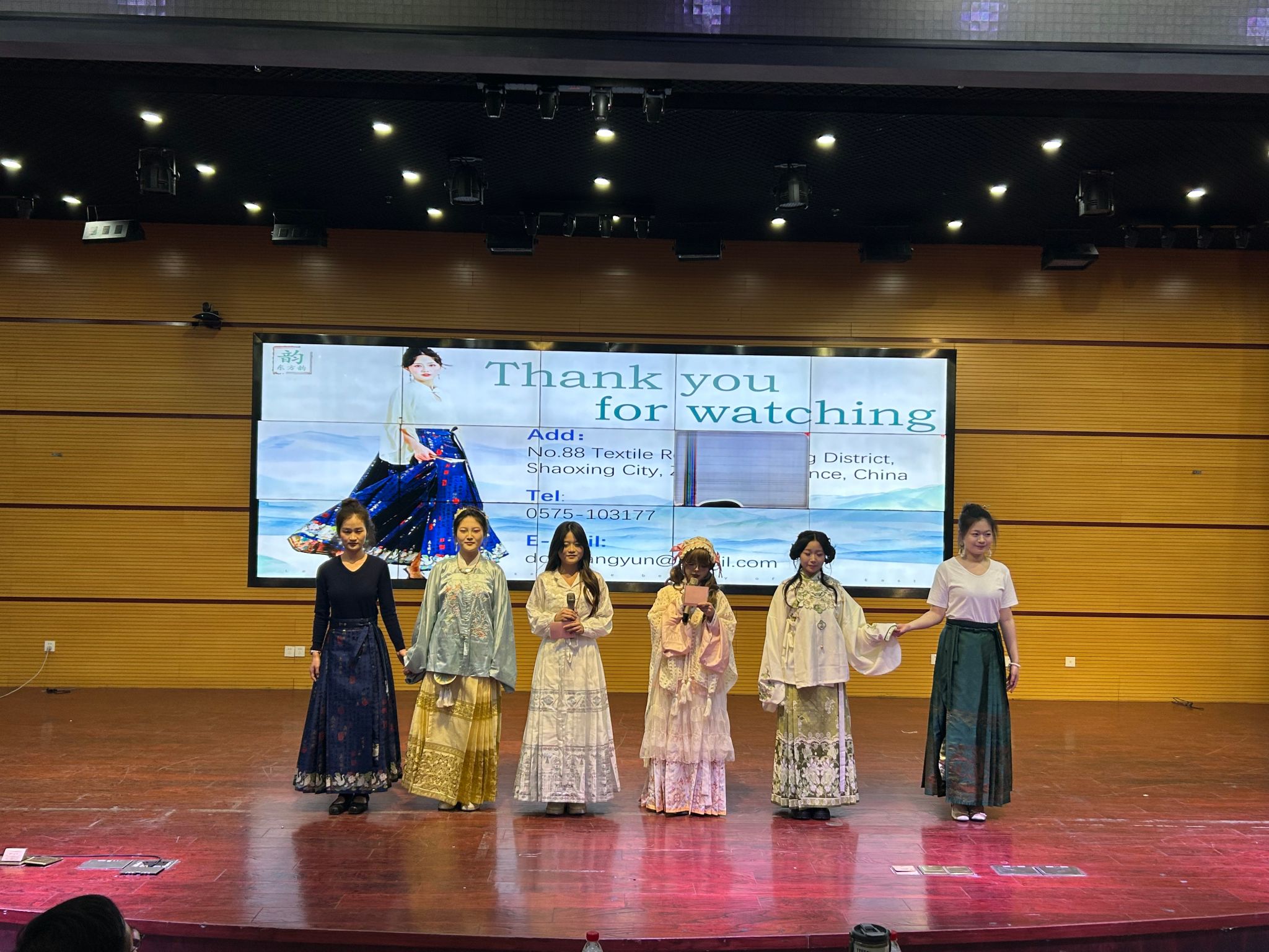 2025年4月2日下午,2024年校技能节第13届国际贸易新产品发布会大赛在学术报告厅成功举办。本次大赛共有5支队伍、37名选手参加大赛。大赛采取全英文方式进行国际贸易新产品推介,参赛的各代表队自行寻找合作厂商提供产品,推介的产品主要有电动牙刷、AI机械键盘、半球网络摄像机、马面裙、智屋AI智能音箱等新颖创新的适销外贸参展商品。每队派出2名英文主讲配以PPT,并辅以现场产品功能展示、舞蹈、情境剧、模特秀等丰富多彩的形式来进行推介。经济贸易学院各班级200余名学生现场观摩了比赛。大赛锻炼和提升了学生的国际市场营销、英语口语、外贸展示、团队合作、创新创业等职业技能。