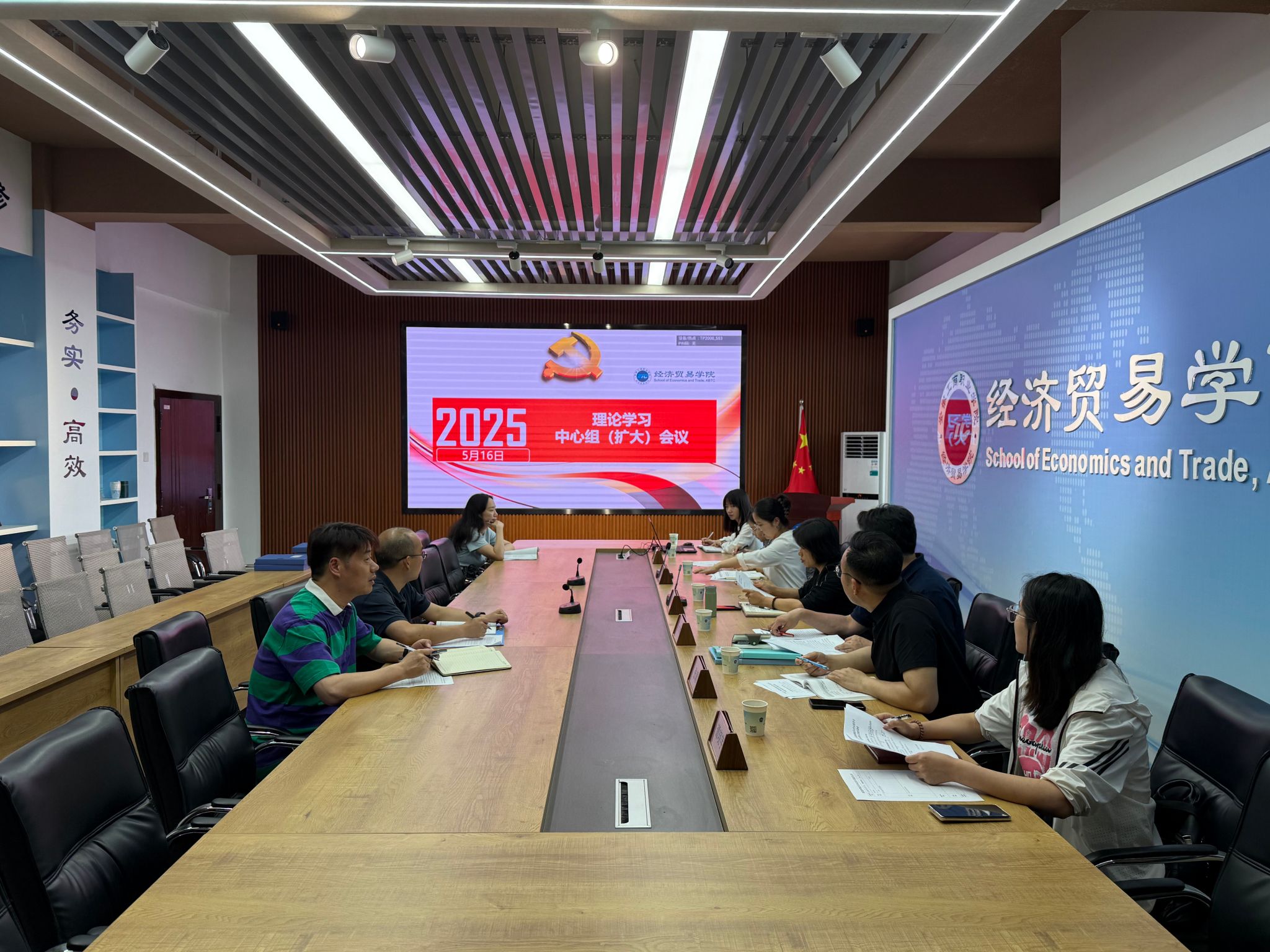5月16日中午,经济贸易学院党总支在5楼教师能力提升中心召开理论学习中心组学习(扩大)会议暨专题学习教育读书班第三次集中学习会,党委宣传统战部、组织人事处相关人员列席旁听,会议由党总支副书记马莉主持,党总支委员、副科级干部参加会议。
