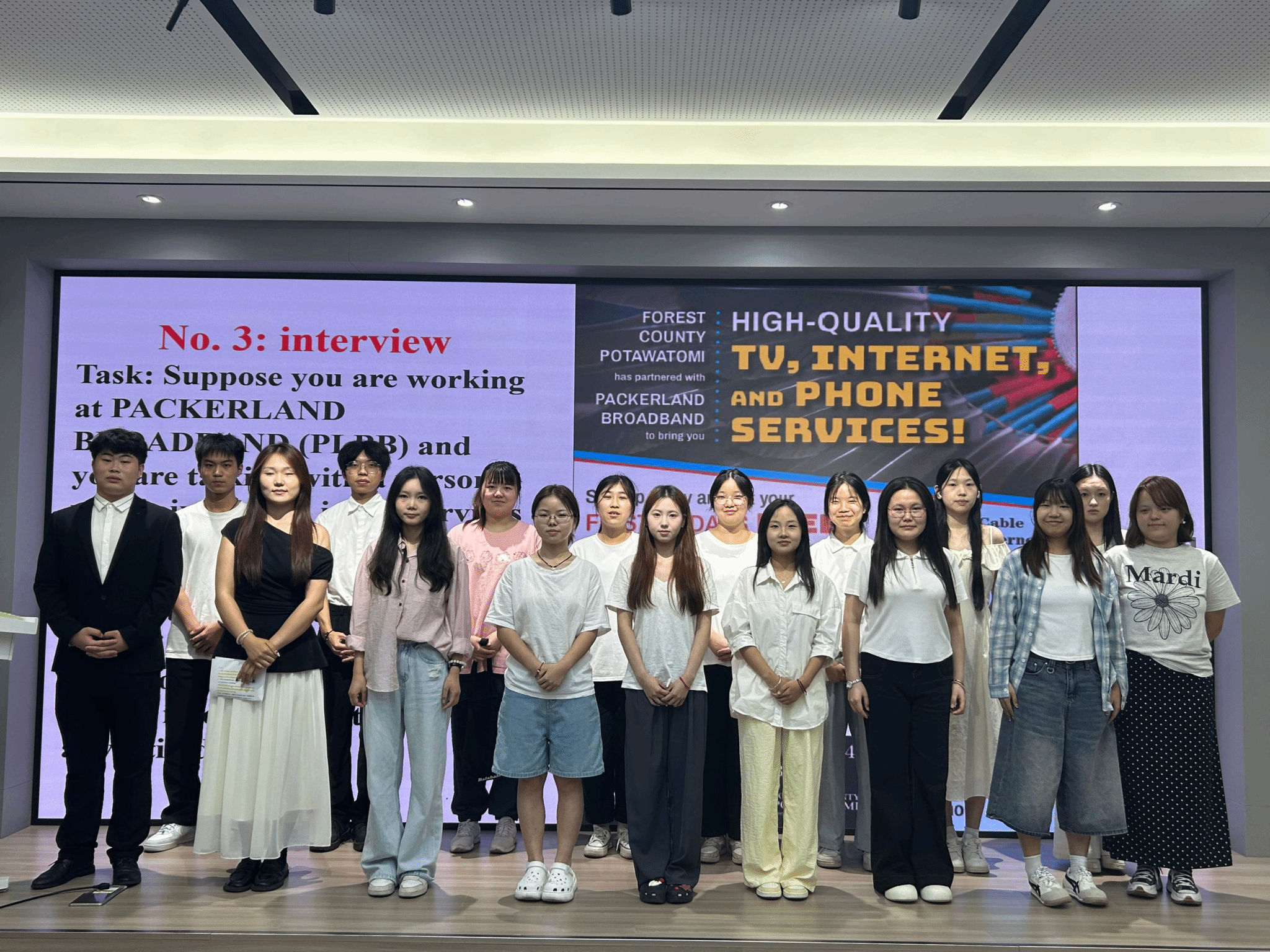 为加快推进我校商务英语专业建设和课程教学改革,践行“以赛促学、以赛促教”理念,不断提高学生英语口语技能,同时也对接世界职业院校技能大赛教育与体育赛道,2025年6月18日下午,由经济贸易学院承办的2025年安徽工商职业学院英语口语大赛英语专业组决赛在经济贸易学院外贸综合实训室举行。经层层选拔,来自商务英语专业的120多名同学参加了初赛和复赛,最终15名同学进入决赛。