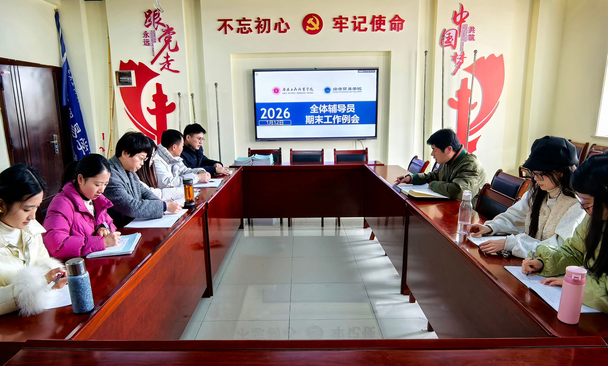 1月12日,经济贸易学院召开期末辅导员工作会议,传达学校学生工作会议精神,系统部署期末收尾、寒假衔接与开学准备各项工作。会议由学生科科长邬金主持,全体辅导员参加。