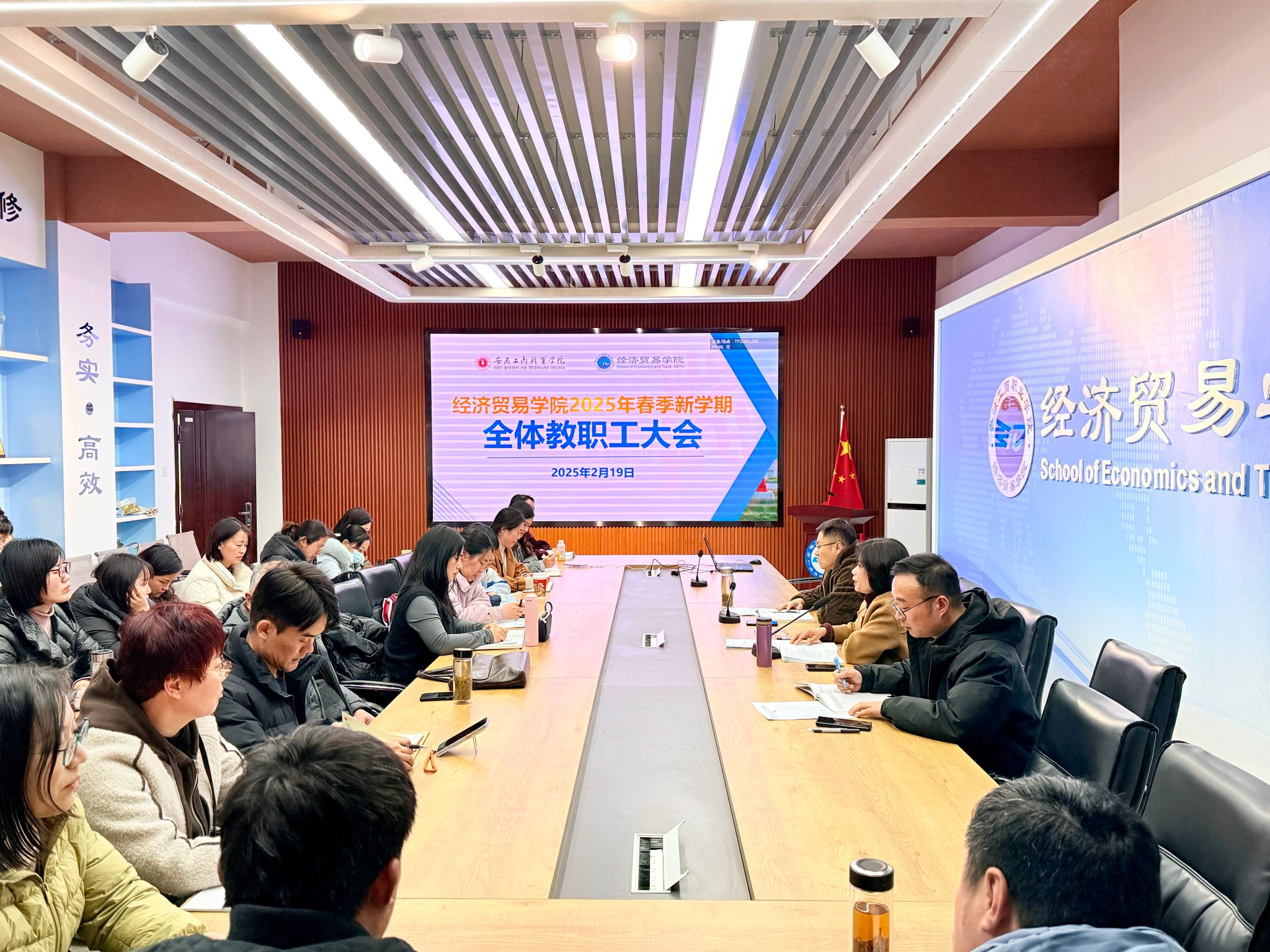 旧岁耕耘结硕果,新程奋进启宏图。2025年2月19日下午,经济贸易学院召开春季新学期全体教职工大会。学院领导及全体教职工参会,会议由经济贸易学院院长张颖主持。
