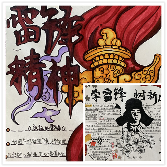 学习雷锋好榜样,雷锋精神放心上。为进一步推进“学雷锋”志愿服务的各项活动,在校内营造浓厚宣传氛围,团总支学生会宣传部组织举办以“描绘雷锋形象•弘扬雷锋精神”为主题的手抄报比赛,以手抄报的形式的描绘心中的雷锋形象和动人事迹。同学们以丰富多彩、图文并茂的形式在手抄报上展示了学雷锋、讲文明等内容,把对雷锋的崇敬和怀念之情深深融入到手抄报创作之中。一幅幅作品主题鲜明,设计新颖,充分展现了我院青年学子对雷锋精神的热爱。