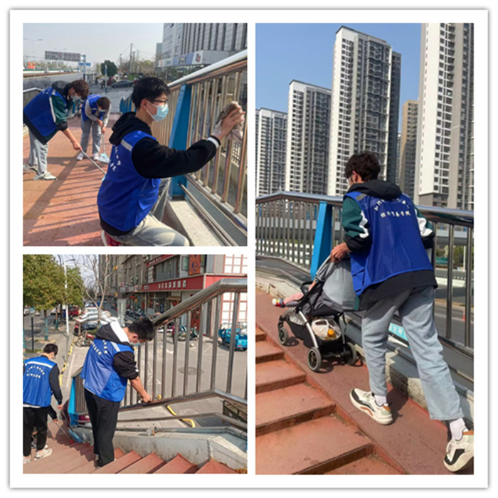 践行雷锋精神,投身志愿服务,加强校园文明建设,315日下午在老师的带领下,同学们前往阜阳北路天桥,开展常规清扫活动,助力环境卫生整治,清洗扶手、擦拭玻璃和彻底打扫楼梯与台阶,同学们分工协作、挥汗如雨。在大家的共同努力下,天桥上枯枝烂叶、饮料瓶等各类生活垃圾清理干净,行人们都纷纷露出了满意和赞许的目光,让同学们心里感到非常的满足。看到自己的劳动成果,同学们纷纷表示:此次活动既弘扬了雷锋精神,又培养了劳动光荣、服务群众、奉献社会的高尚情操,今后我们将继续以实际行动传承雷锋精神,让雷锋精神薪火相传。