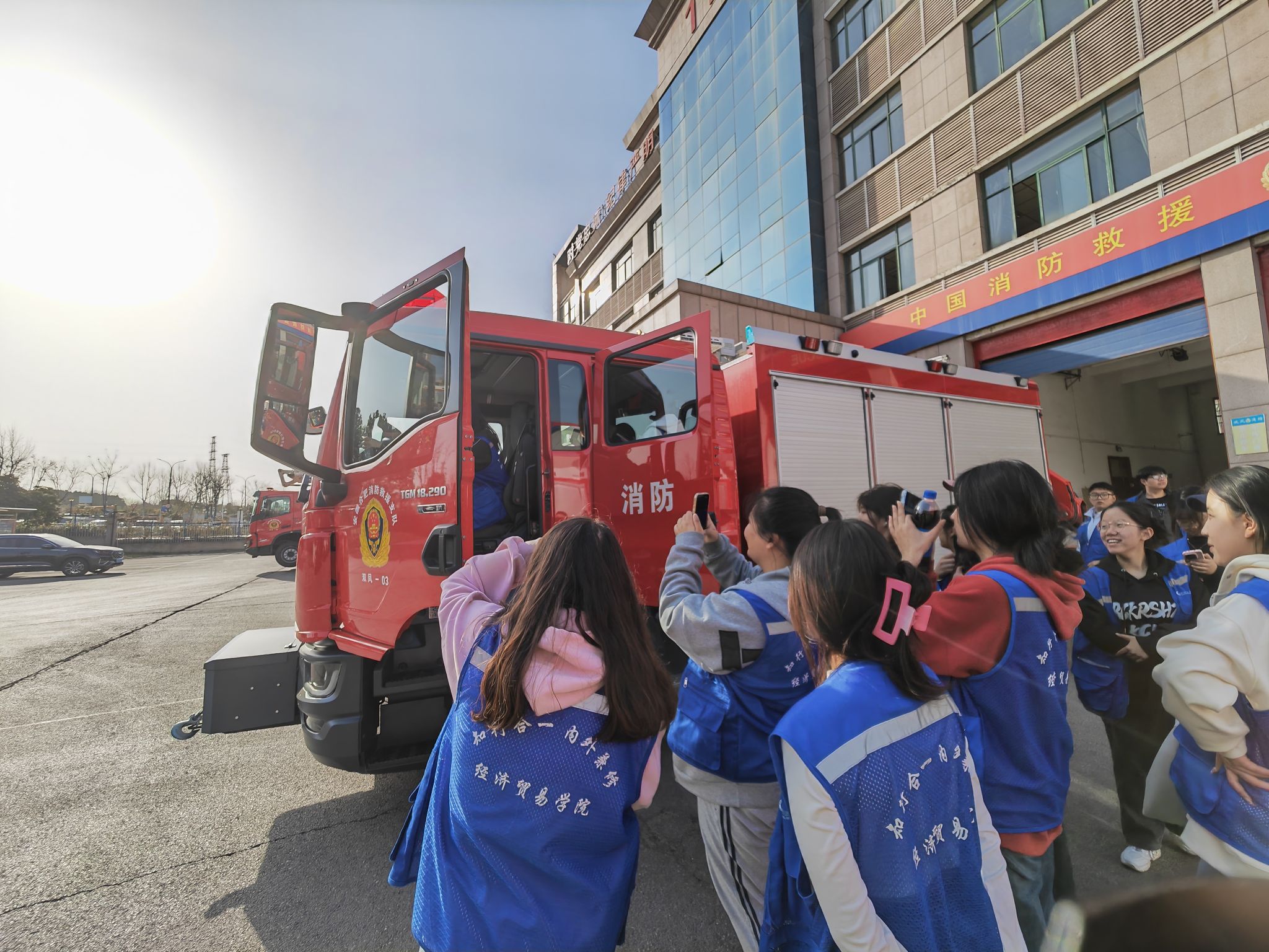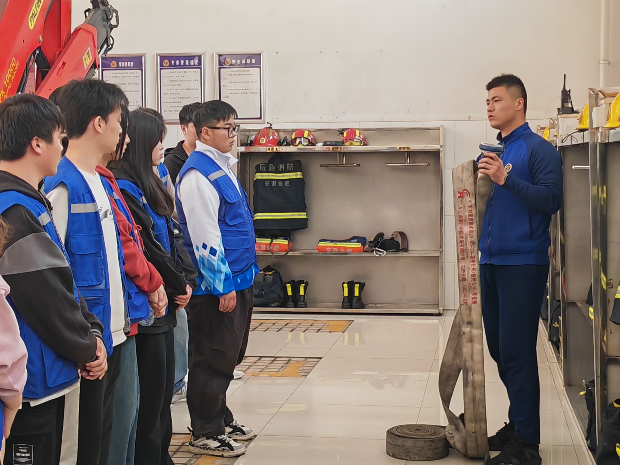 沐三月暖阳,坐东风而见春。为提高大学生消防安全意识和自防自救能力,深入开展消防安全宣传和教育工作,让更多的学生关注、了解、宣传消防,3月20日,经济贸易学院团总支走进双凤消防救援站,近距离体验消防员生活,学习消防安全知识,“零距离”感受消防文化,“面对面”体验消防课堂魅力。