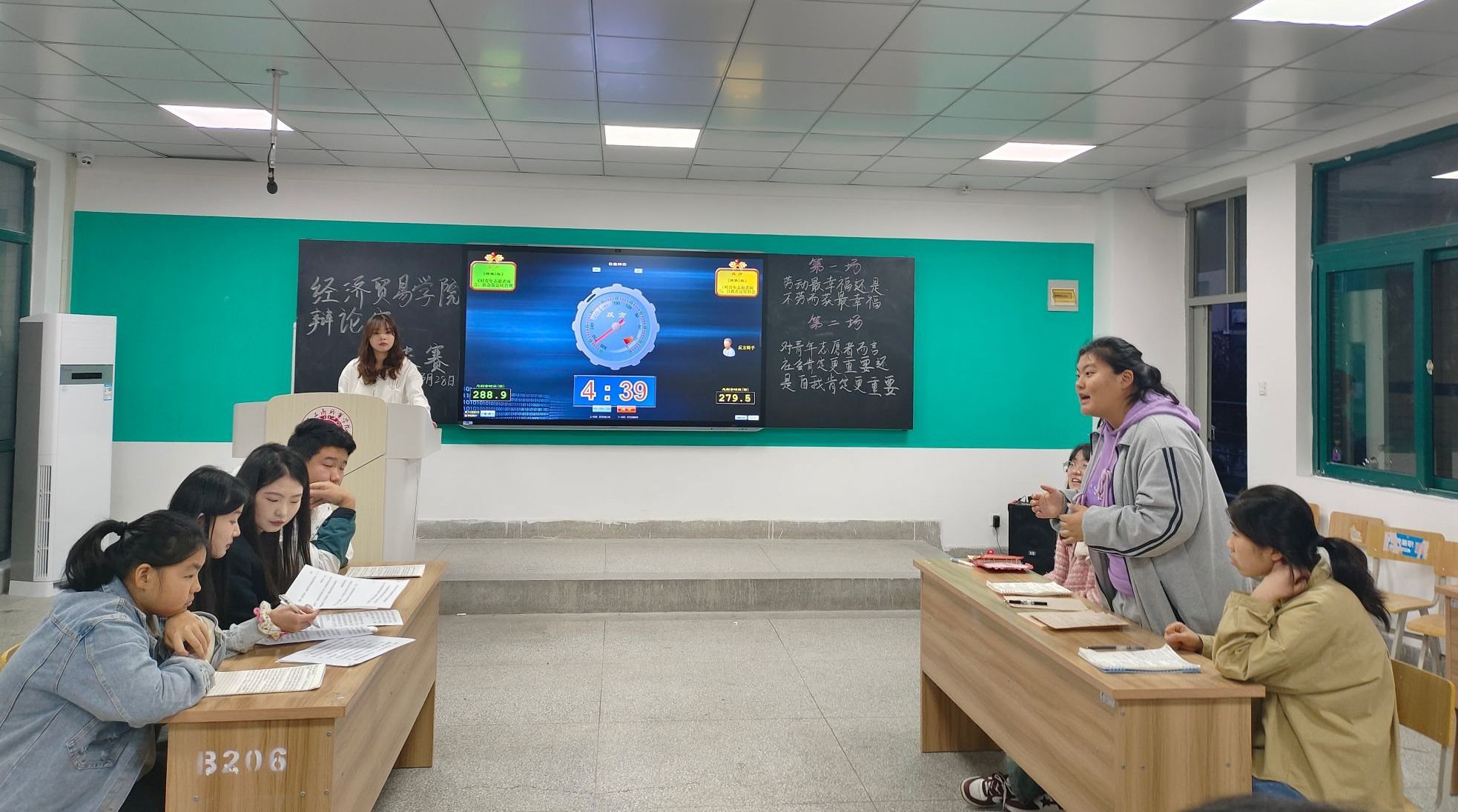 为了深入开展学雷锋活动,推动学雷锋活动常态化,大力弘扬雷锋精神,提升经贸学子个人思辨能力和语言组织能力,经济贸易学院于3月28日在B202教室开展“学雷锋志愿服务月”系列活动——“遍辨变辩,‘锋’回路转”辩论赛。
