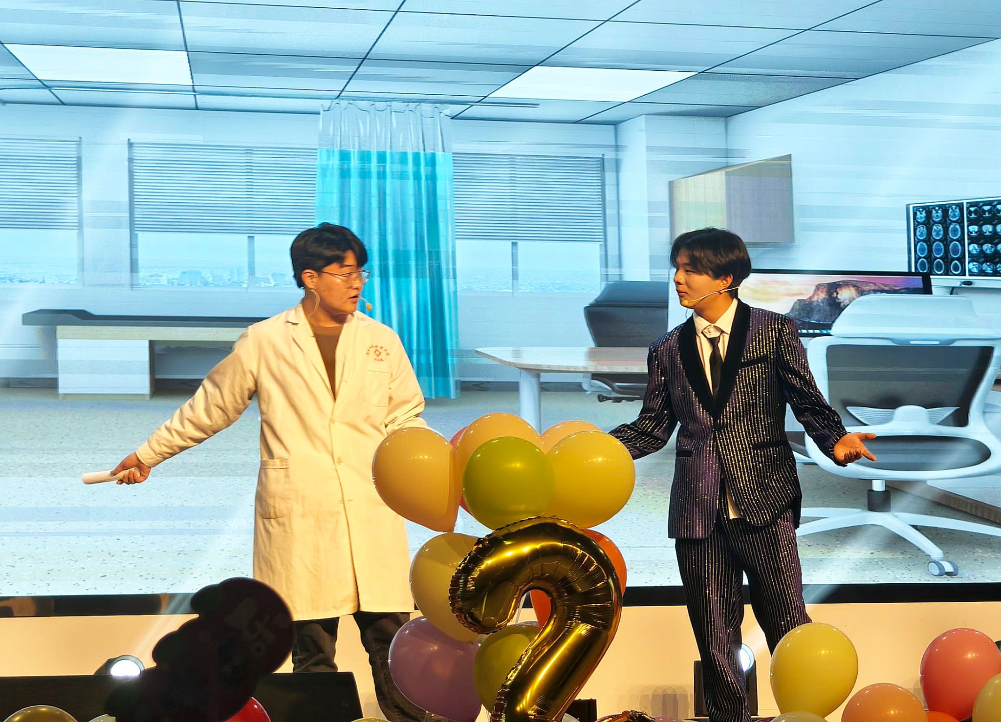 华彩四溢,灯影绰约,联欢晚会在舞蹈《盛世欢歌》红绸漫卷耀银光氛围中拉开帷幕,同学们载歌载舞齐“贺蛇年”。舞蹈《青苹果乐园》《Mr Chu》《寄明月》《相思谣》以其充满活力的舞步和激情四射的表演,完美展现青春的活力与自信;小品《总裁请就诊》《回音山谷》以其机智幽默的对话和深刻的内涵,为观众带来了无尽的欢笑;朗诵《一封家书》以激昂的文字和饱满的情感,引领师生回溯历史、展望今朝,表现了当代青年的高远志向与家国情怀;歌曲《男孩》《想把我唱给听》《稻香》《传奇》旋律缓缓流淌,充满情感的嗓音,细腻表达深沉而持久的真挚情感,与合唱《夜空中最亮的星》相互映衬、熠熠生辉……晚会节目精彩纷呈,为师生带来一场难忘视听盛宴,赢得掌声阵阵。