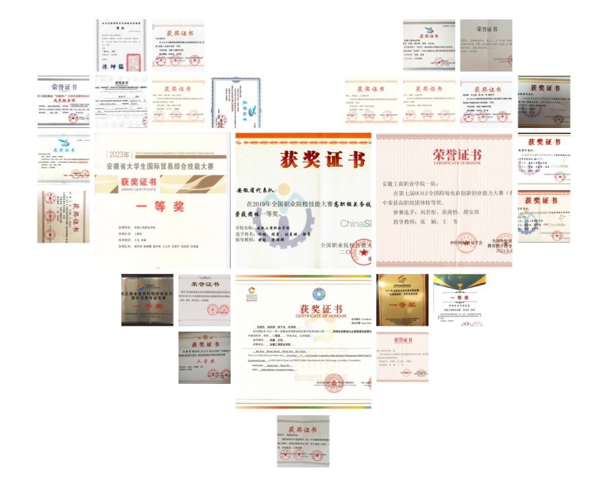 经济贸易学院专业学生在国家级、省级各类职业技能竞赛中取得了骄人的成绩。2016年至今共获奖项50余项,其中国家级特等奖2项,一等奖40项。