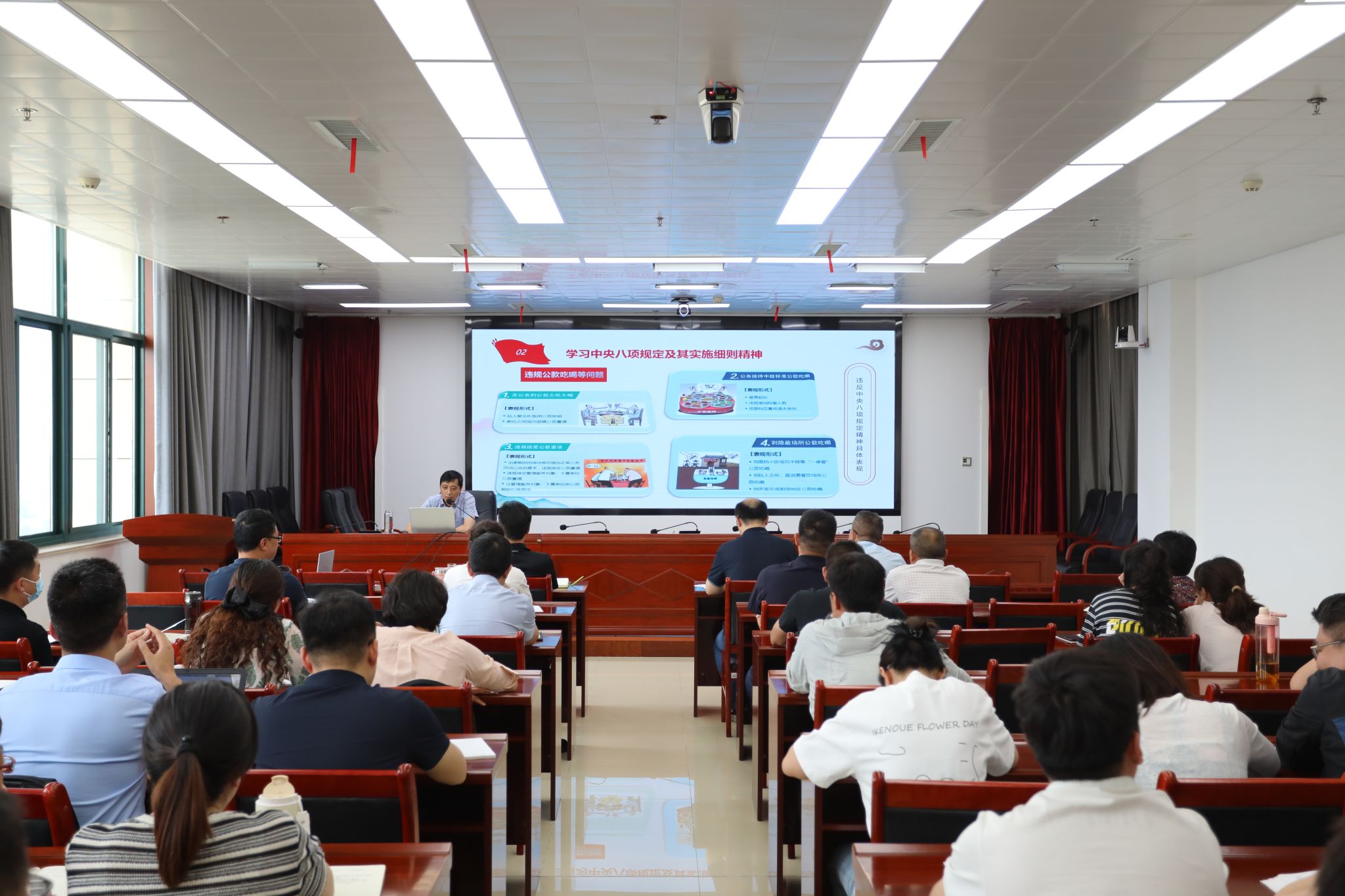 2025年5月28日下午,党委委员、纪委书记吴松飞以《锲而不舍落实中央八项规定精神》为题,为纪委委员、各二级党组织纪检委员、旅游健康学院党总支教工党员以及直属第一党支部党员讲授深入贯彻中央八项规定精神学习教育专题党课,进一步强化党员、干部纪律意识,推动作风建设向纵深发展。