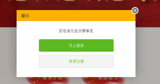 二、竞赛模式:正式答题时,需要登录注册赛事星账号,每个用户仅可答题1次(温馨提示:答题过程中不允许切屏,手机息屏也视同切屏,1次切屏系统就会自动提交试卷)。