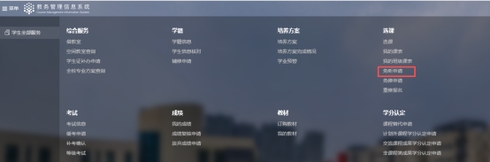 第一步,登录教务系统,选择免修申请。