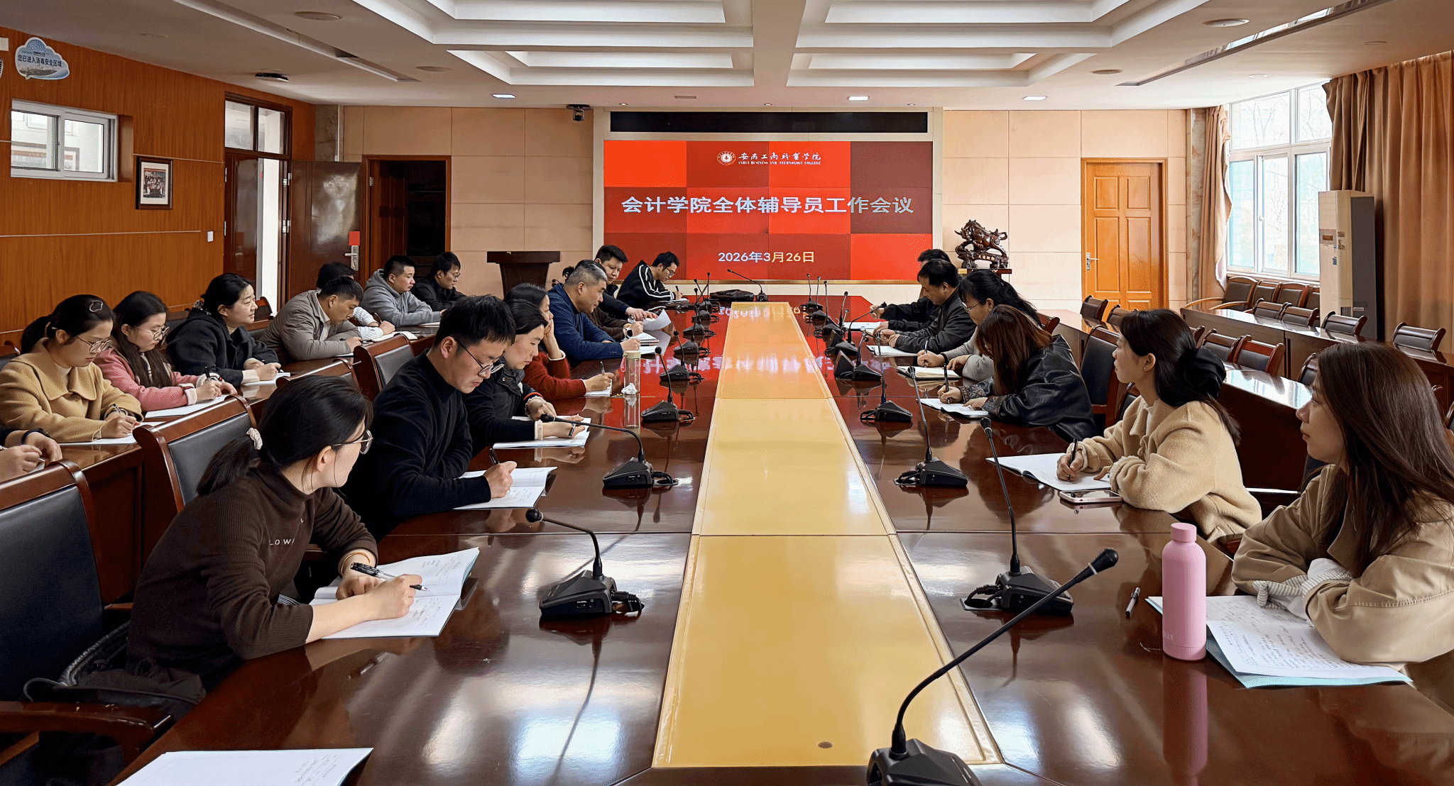 3月26日,会计学院在明德楼二号会议室召开学院三月份全体辅导员工作会议。会计学院党总支书记赵艳、全体专兼职辅导员、学生科及教务科工作人员参加会议。党总支副书记李峰主持会议。