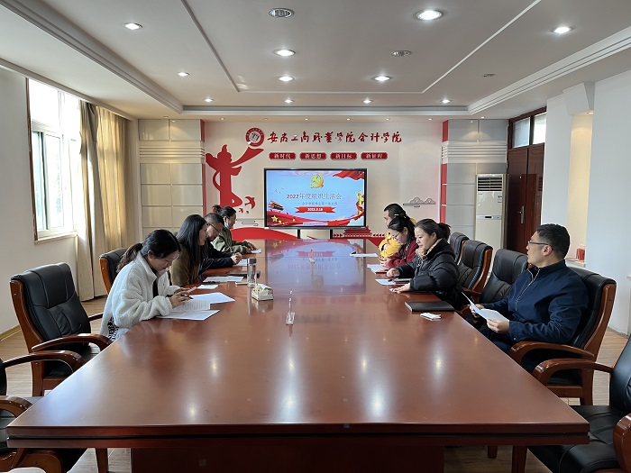 为深入学习贯彻习近平新时代中国特色社会主义思想和党的二十大精神,进一步加强和改进党支部建设工作,2023年3月16日上午会计学院学生第一党支部在明德楼党建会议室召开2022年度组织生活会。会计学院党总支副书记杨锐到会指导,支部全体教师党员参加会议,会议由学生第一党支部书记余想花主持。