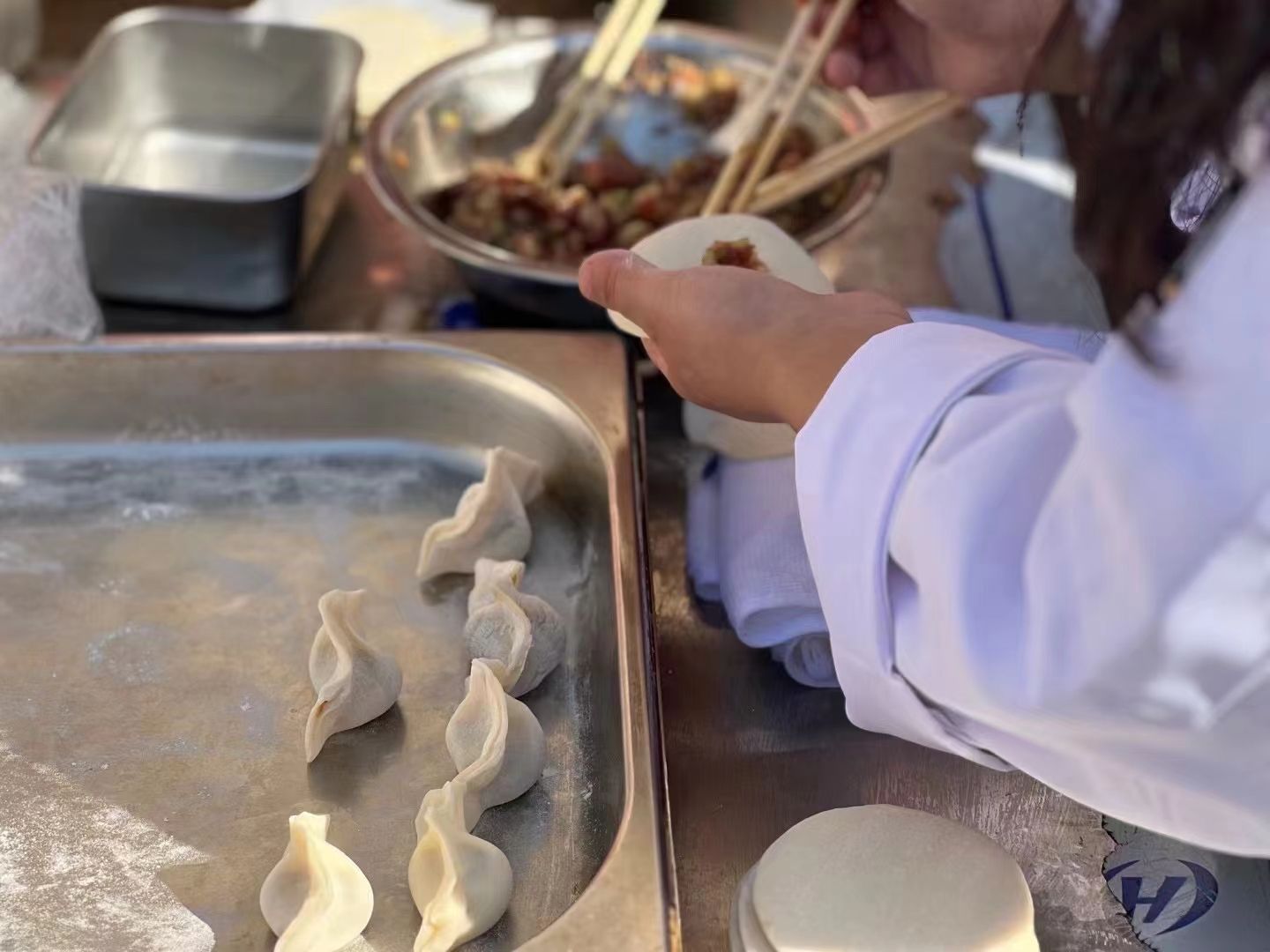 各个班级同学积极参加报名、选拔备战,活动现场,同学们纷纷化身为厨艺高手,亲手包制出各式各样的美味饺子。在比赛现场,同学们手艺娴熟,配合默契,擀皮、包馅、捏边,一道道工序井然有序,气氛热烈而融洽。