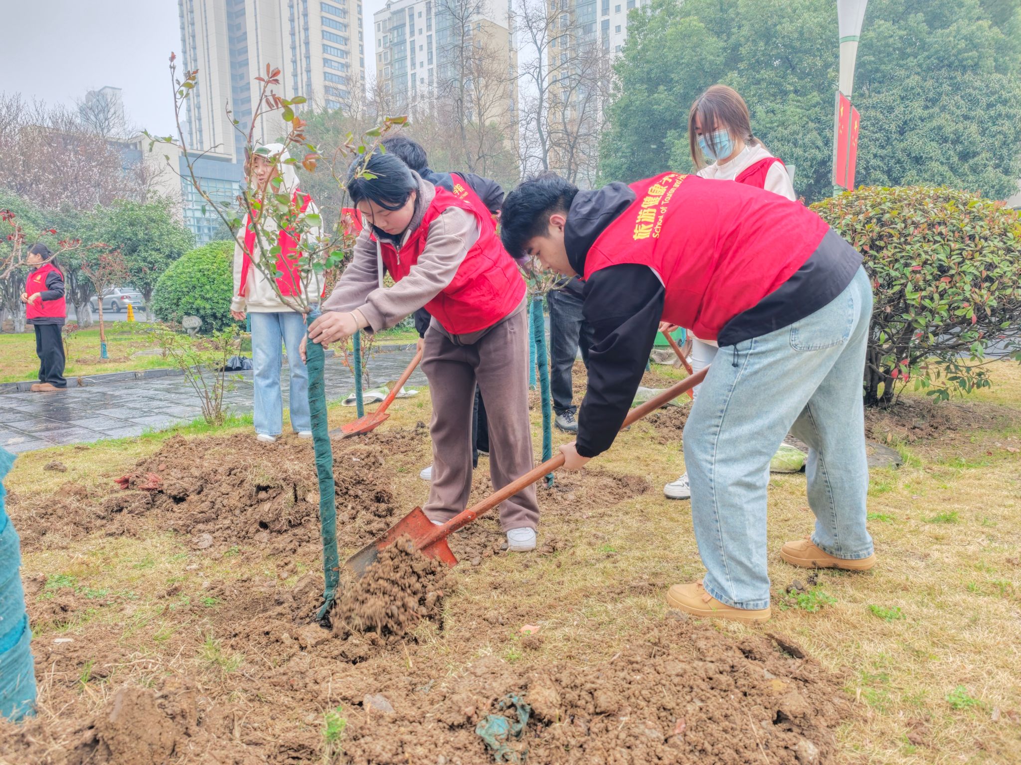 为传承和弘扬雷锋精神,践行“绿水青山就是金山银山”的生态环保理念,助力美丽校园建设。3月12日,旅游健康学院联合后勤管理处和华谊城市服务科技有限公司联合开展了一场别开生面的党建共建植树活动,活动以“党建共建春风劲,雷锋精神绿意浓”为主题,将党建工作与志愿服务相结合,引导师生党员在劳动和奉献中弘扬雷锋精神,努力成长成才。