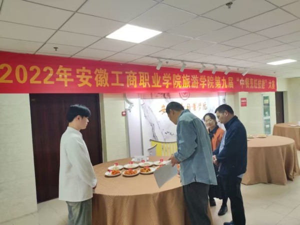 4月22日,安徽工商职业学院第九届烹饪大赛决赛在烹饪实训室隆重举行。旅游健康学院党总支书记边昊及相关专业教师担任比赛评委。