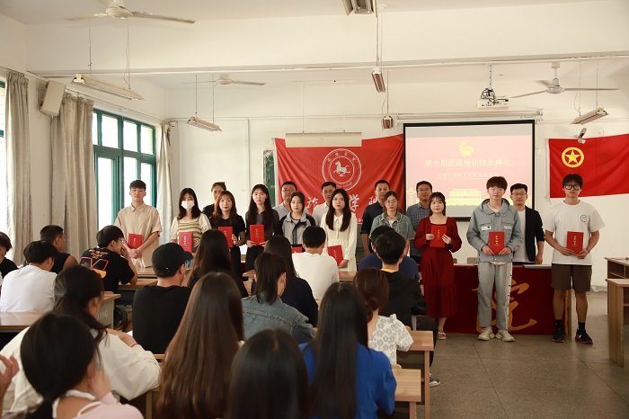 4月20日中午,旅游学院第十期团课培训班在双凤校区B104教室隆重举行。旅游学院党总支书记边昊、学院党政办主任王彦龙以及各班级辅导员和顺利结业的六十余名团课学员参加了此次典礼。
