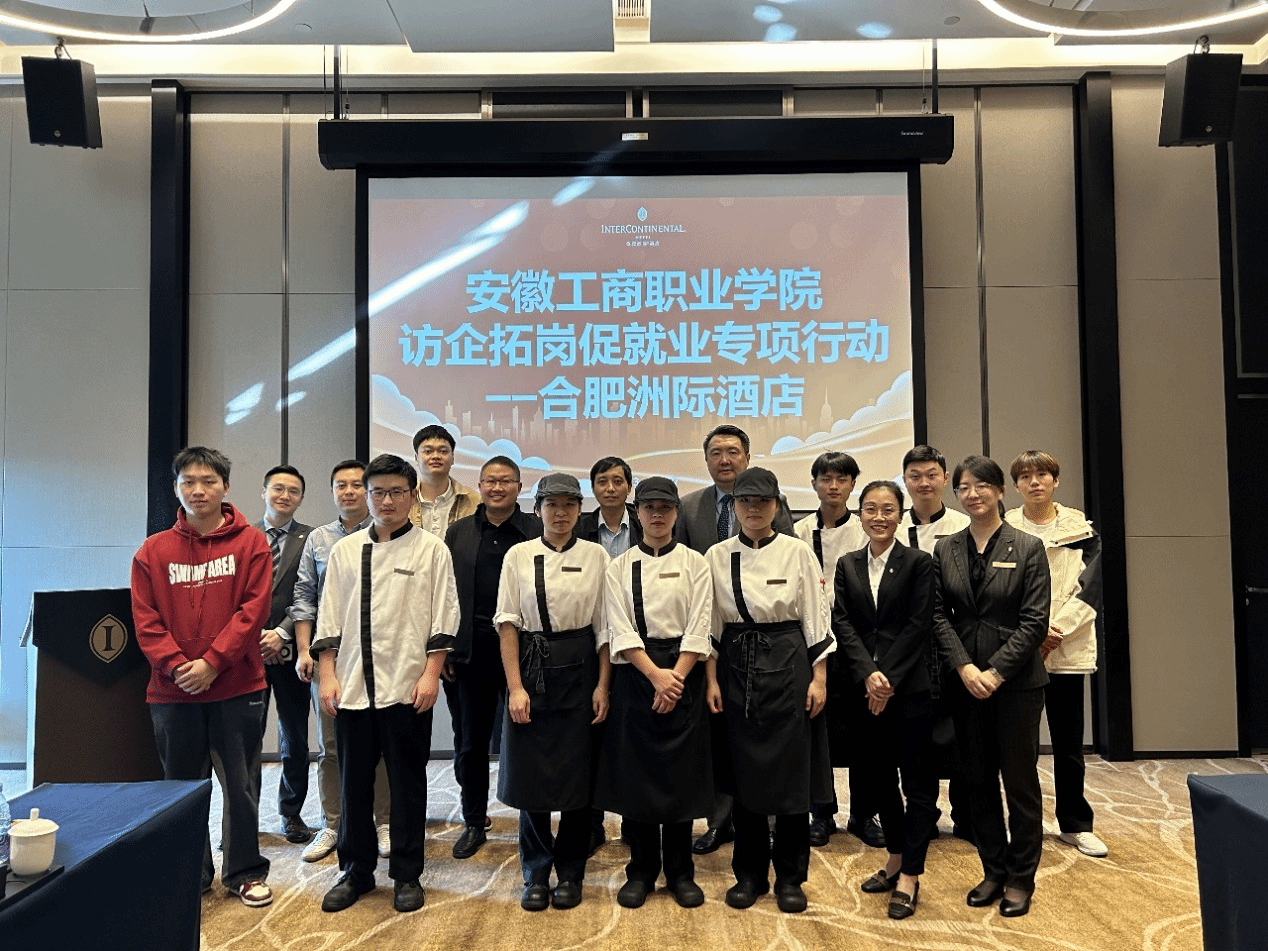 为推进校企合作走深走实,切实了解2021级烹饪工艺与营养专业学生顶岗实习情况,10月17日、10 月24日,学校党委委员、纪委书记吴松飞,旅游健康学院党总支书记杨锐和实习指导老师以及辅导员一行赴合肥洲际酒店、合肥元一希尔顿酒店和北城世纪金源大饭店进行了走访调研,看望在企业参加顶岗实习的学生。