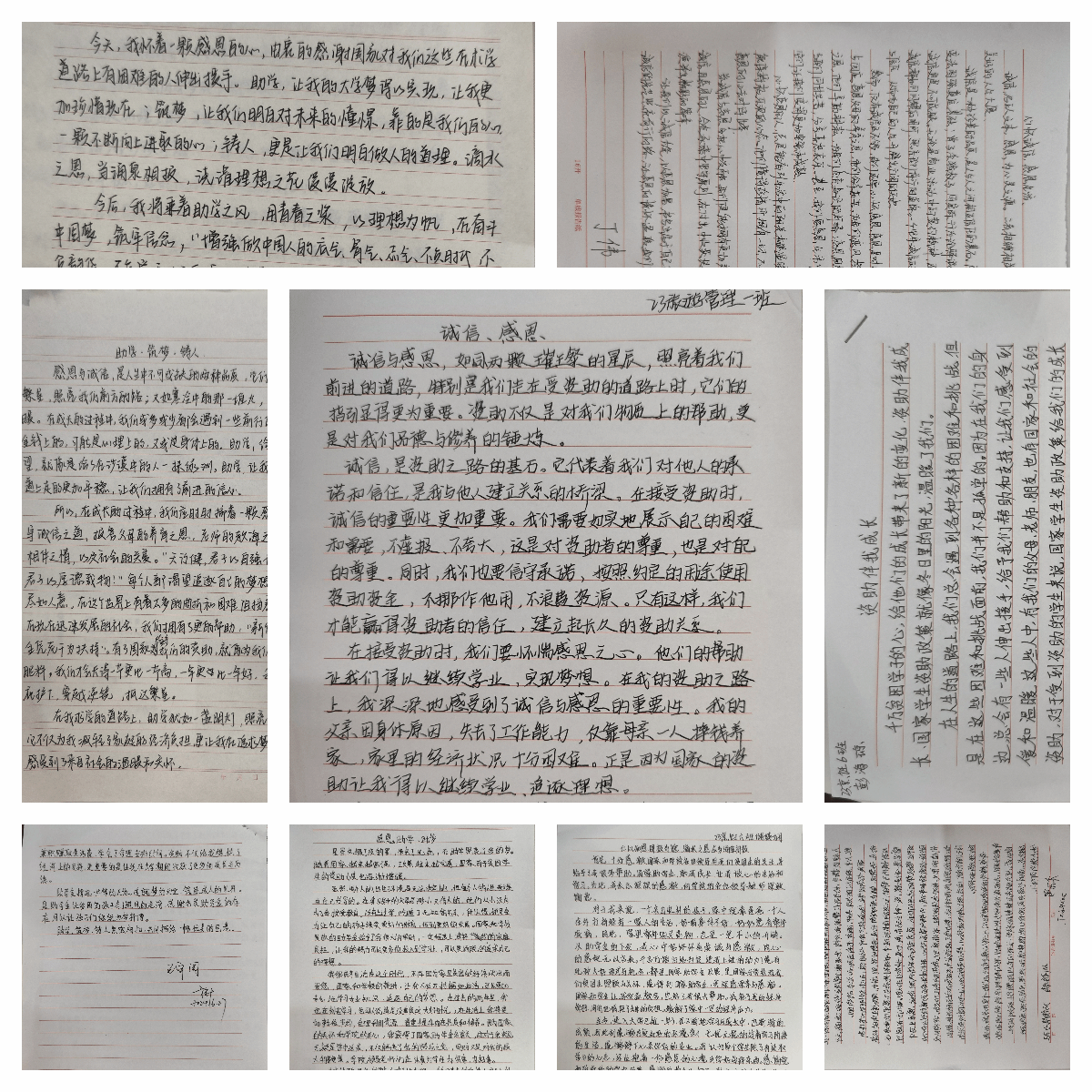 学院通过推出“青春作伴,诚信为本”主题征文征集活动,学生通过征文作品抒发对“诚信”的深刻理解,活动开展以来收到二百篇征文作品,学生在文中深情的表达了对学院资助工作的感谢,表达了励志技能报国的信念,此次活动在全院学生引发良好的反响。